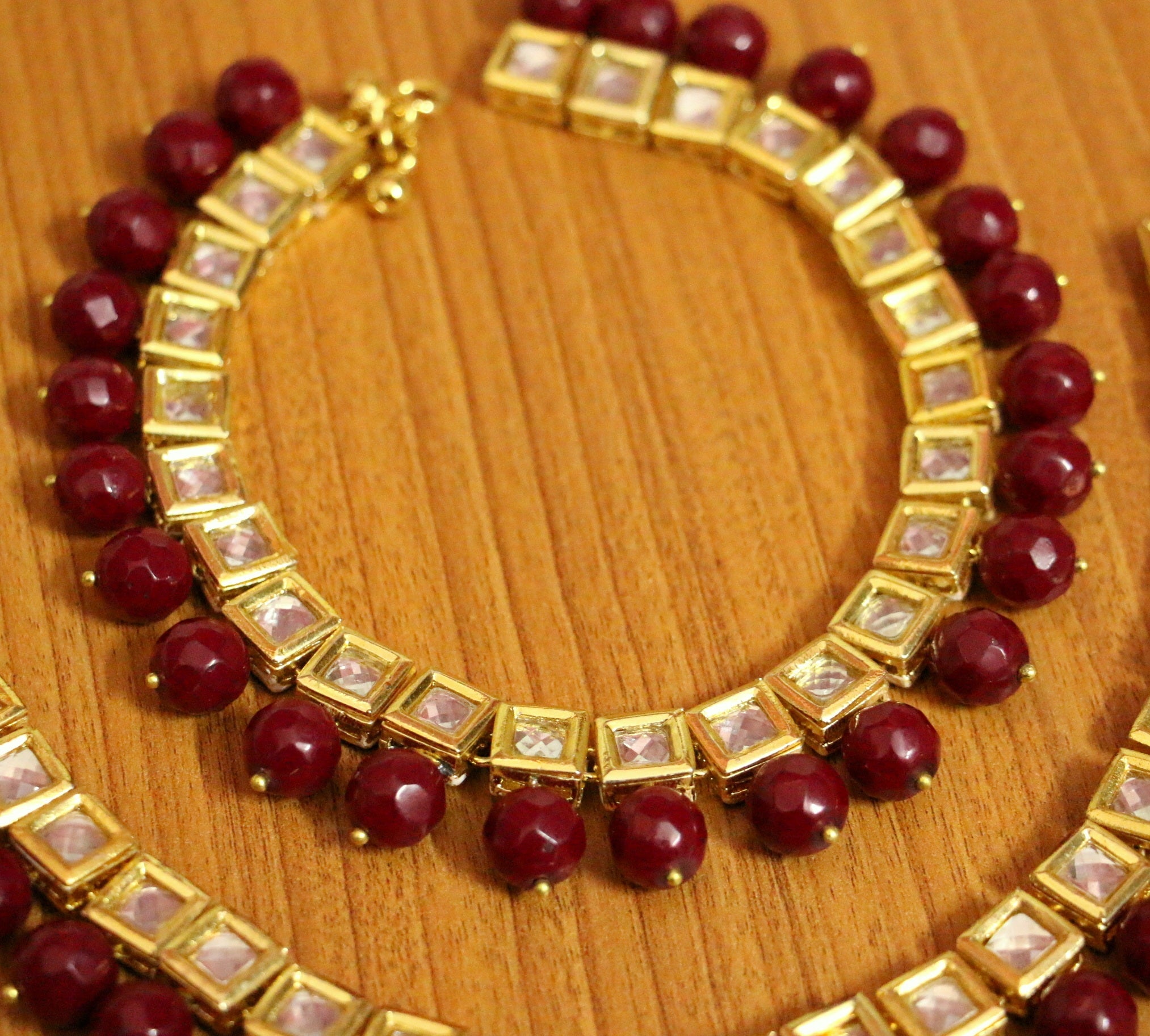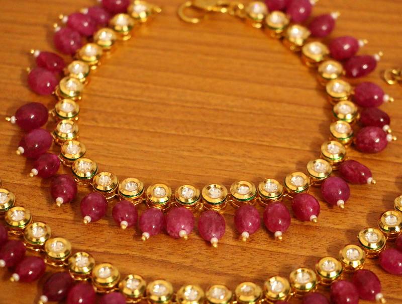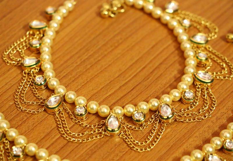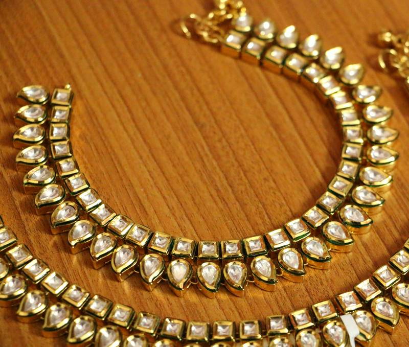 KUNDAN & PEARL GOLD PLATED ANKLETS