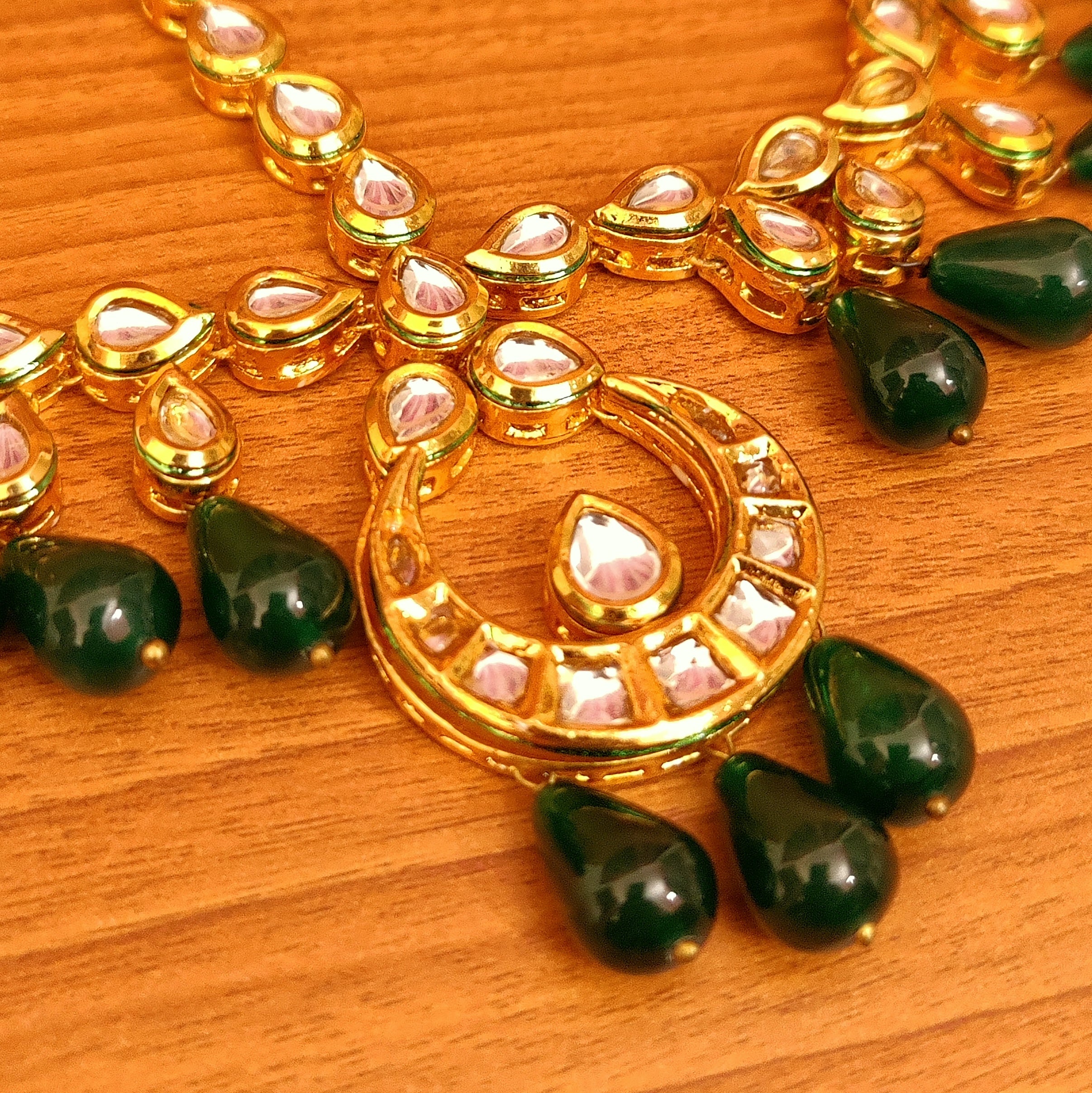 KUNDAN MEENAKARI EMERALD COLOUR DROP BRIDAL MAANG TIKKA