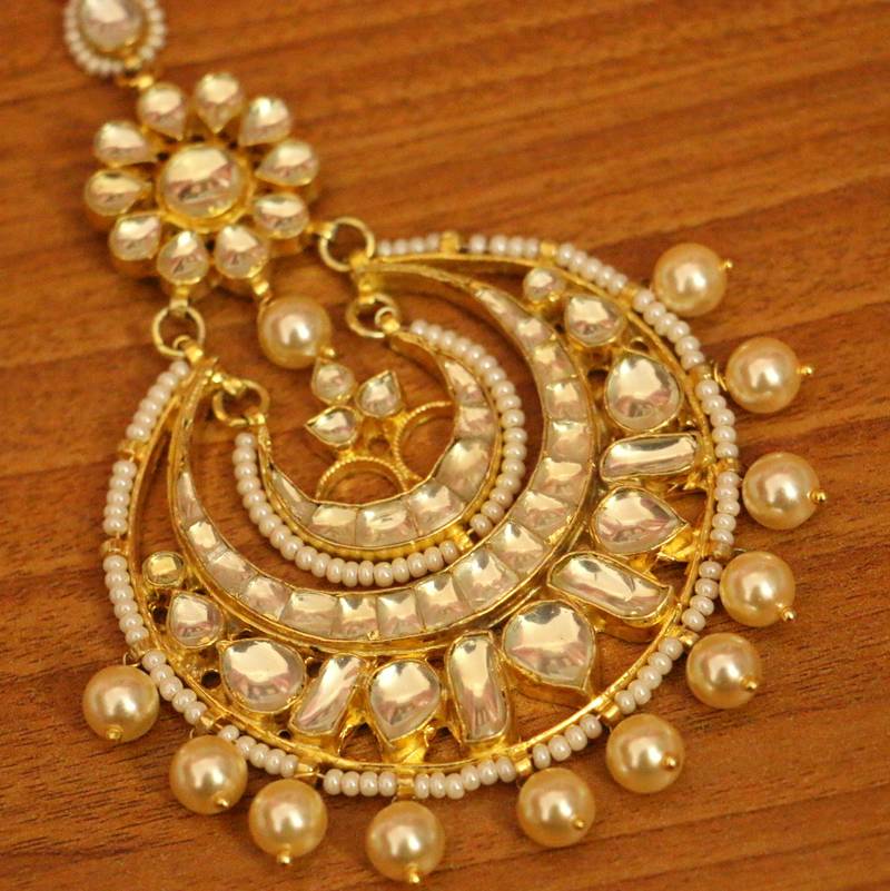 Kundan & Pearl Chaand Baali Bridal Maang Tikka