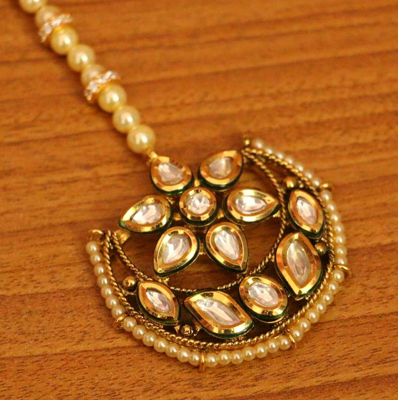 KUNDAN & PEARL ETHNIC MAANG TIKKA