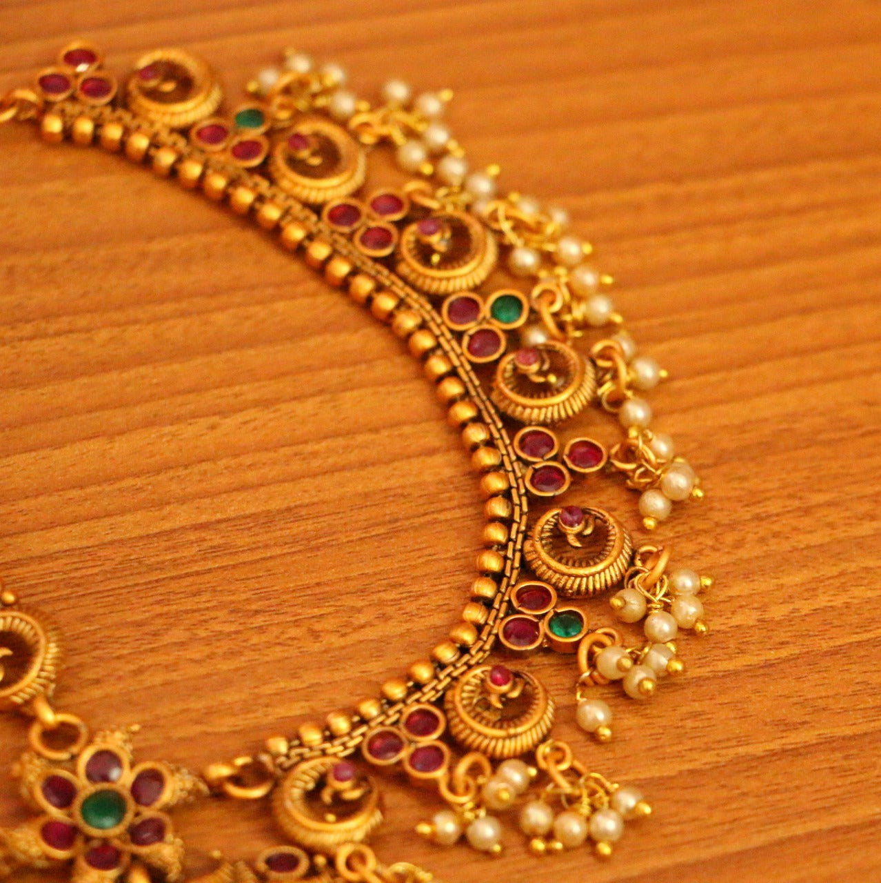 • Material: Copper Alloy, Polki, Pearls, Matt Gold
