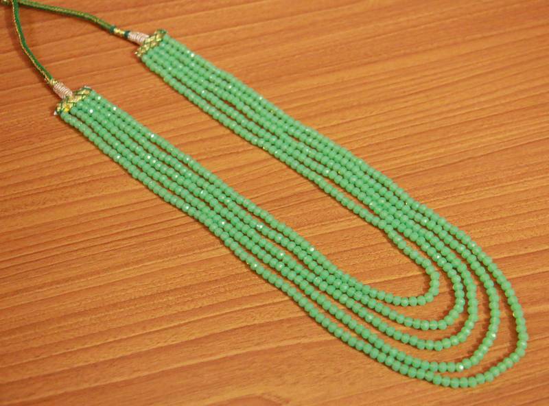 This Necklace is handcrafted in swarowski crystal greean beads of fine quality , this multi layered necklace is very light in weight And Looks Beautiful When Worn In Occasions.