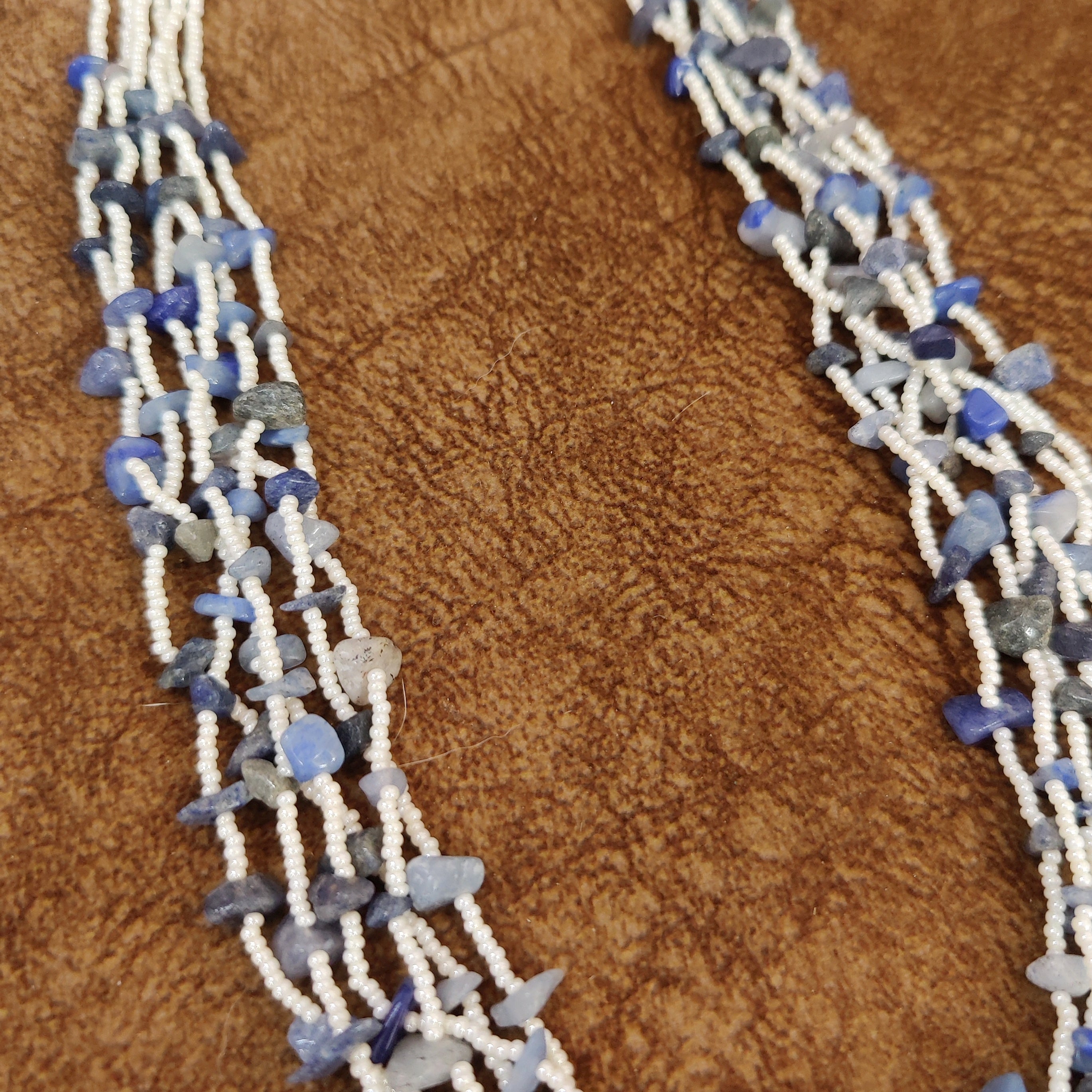 SEMI PRECIOUS BLUE LAPIZ & PEARL NECKLACE