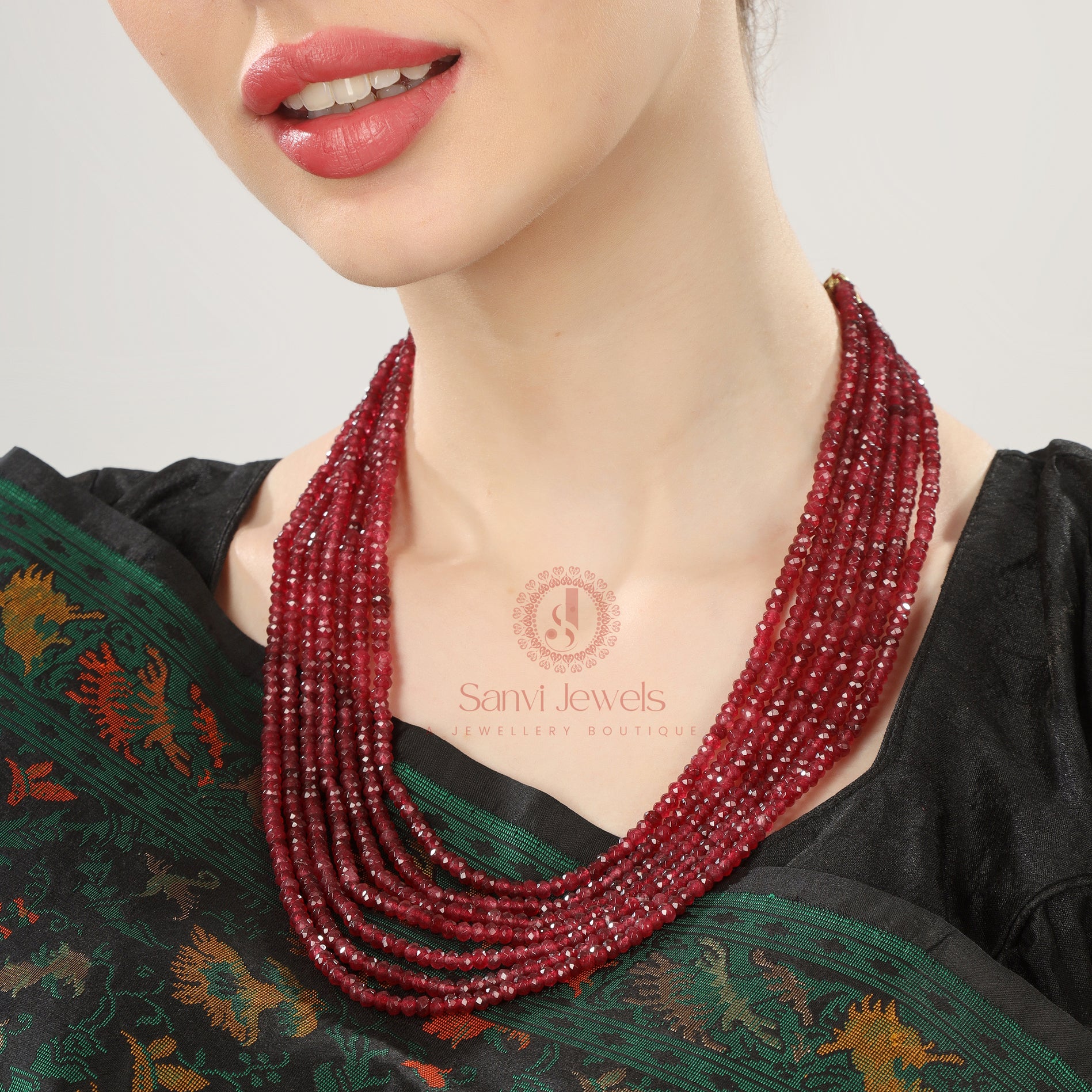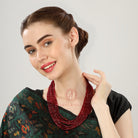 Semi Precious Ruby Colour 7 Line Necklace Set