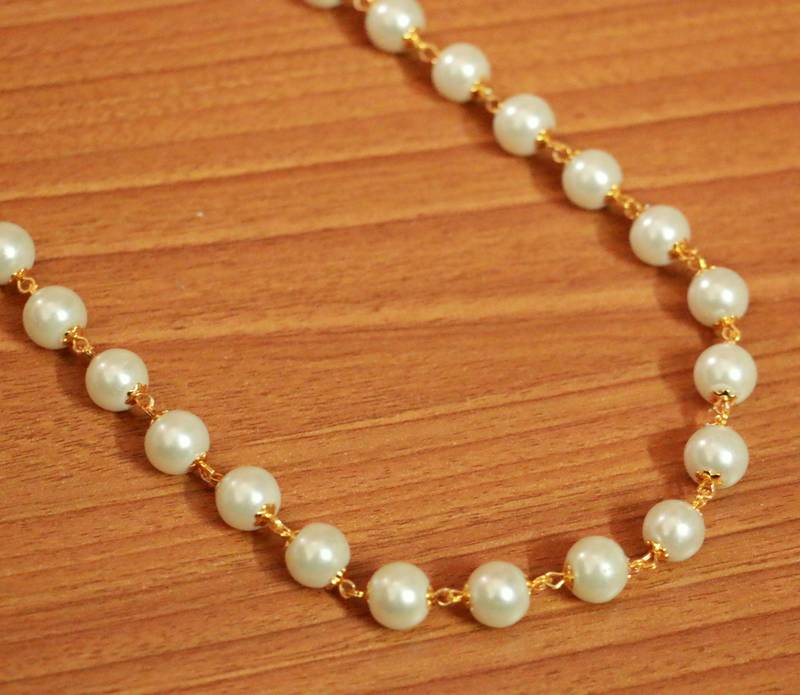 Single Line 8 Mm Pearl Gold Look Necklace