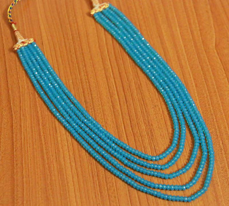 Turquoise Colour 5 Line Semi Precious Necklace Set