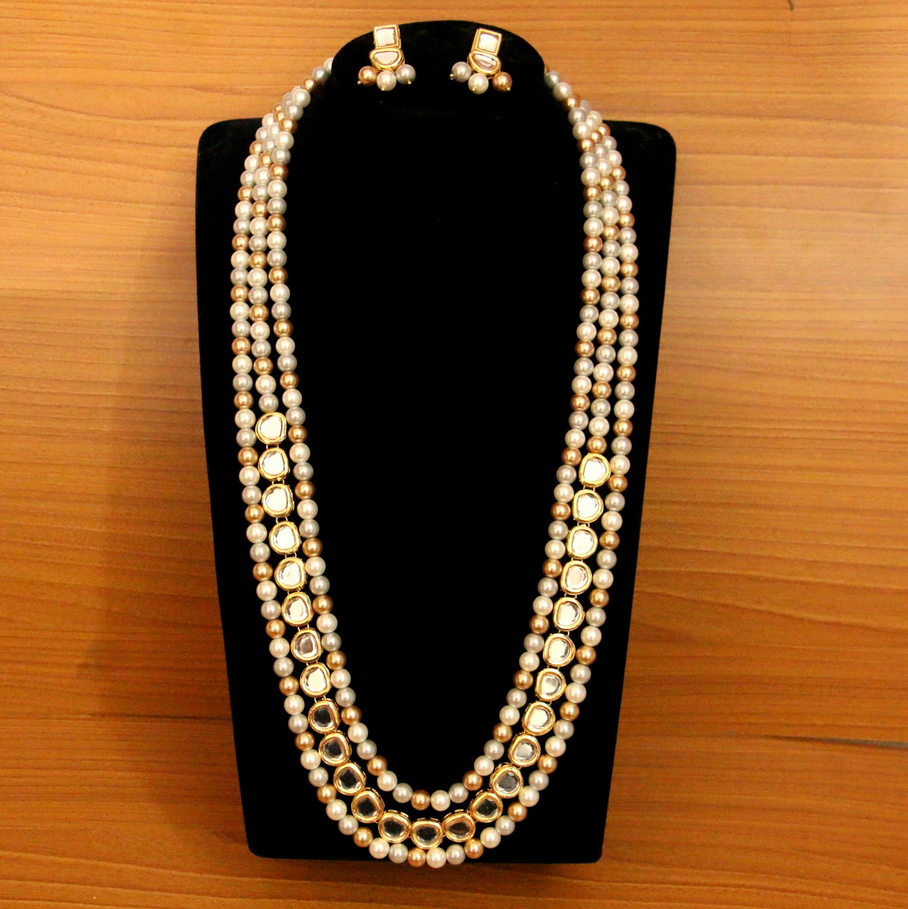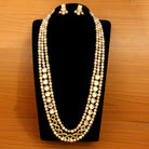 This long kundan polki pearl necklace set is handcrafted in silver alloy with imitation pearls & uncut kundan polki stones of very fine quality , the necklace set plated with 18kt gold rhodium to give it a real gold look.