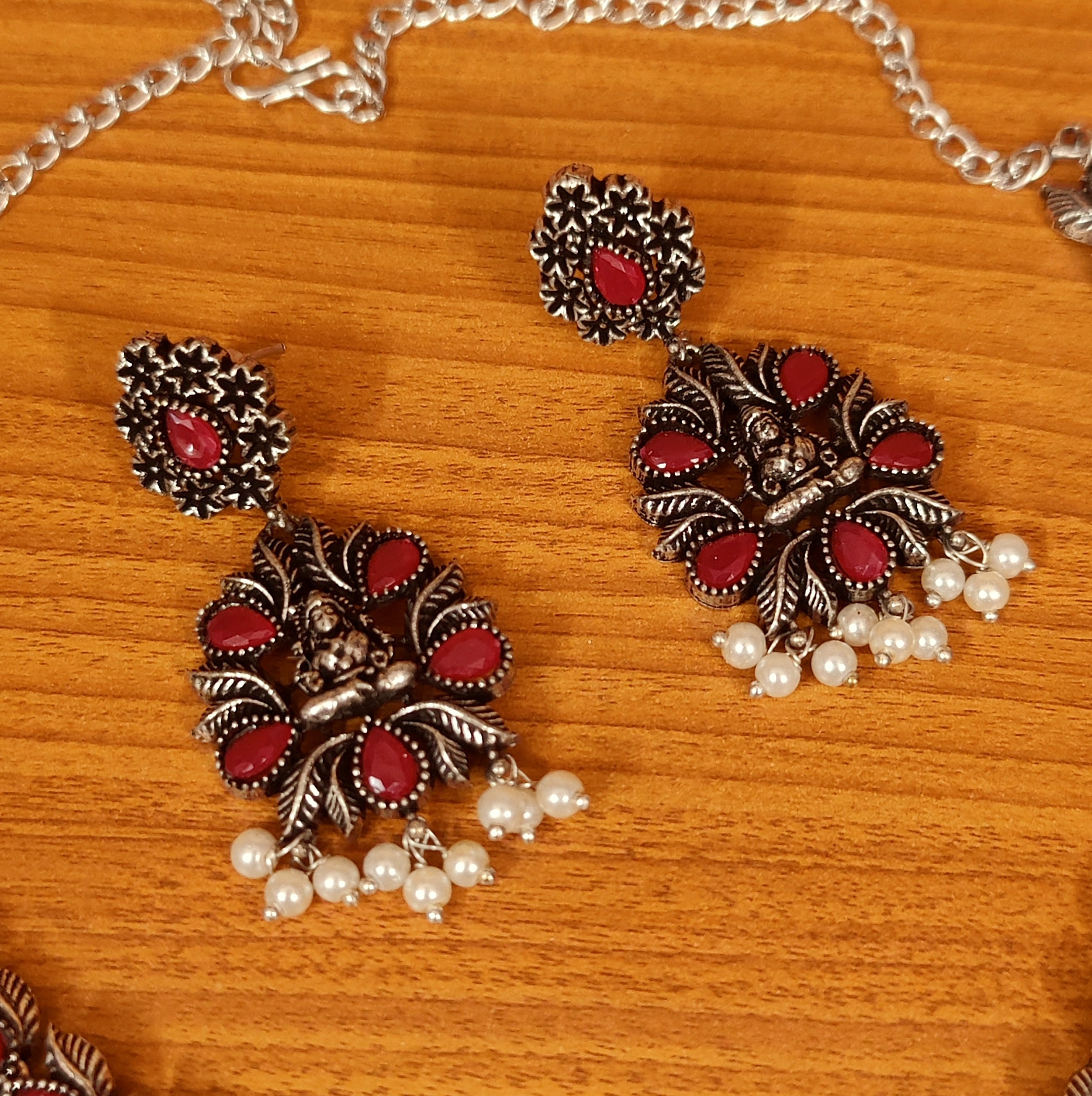 TEMPLE LOOK RUBY OXIDISED SILVER LOOK NECKLACE SET