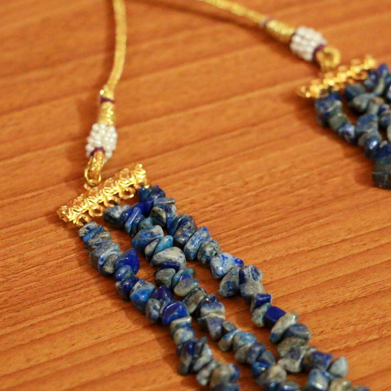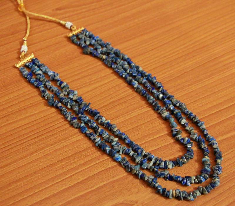 This Necklace is handcrafted in lapiz lazuli beads of fine quality , this multi layered necklace is very light in weight And Looks Beautiful When Worn In Occasions.