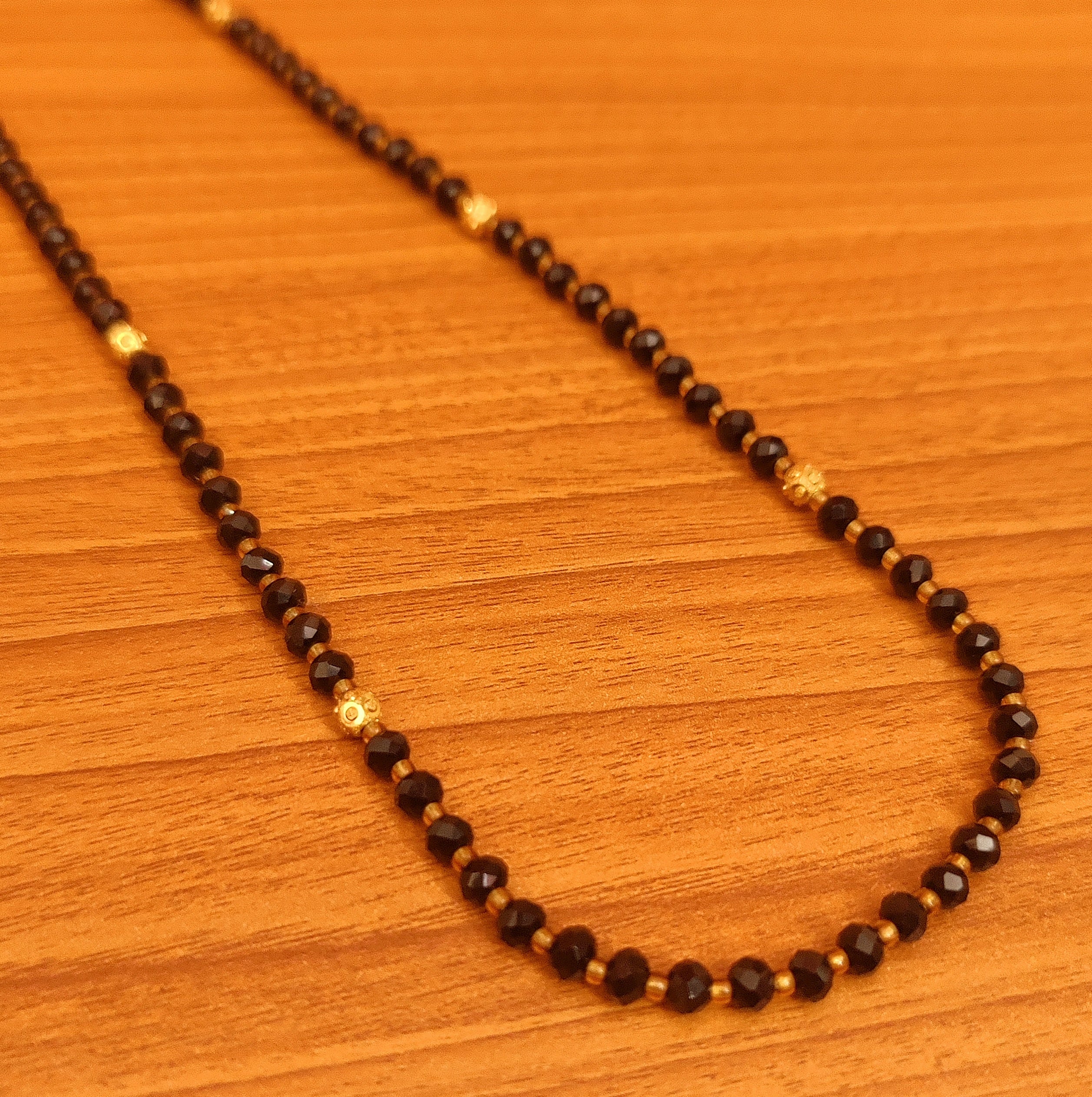 BLACK CRYSTAL GOLDEN BEAD SINGLE LINE NECKLACE