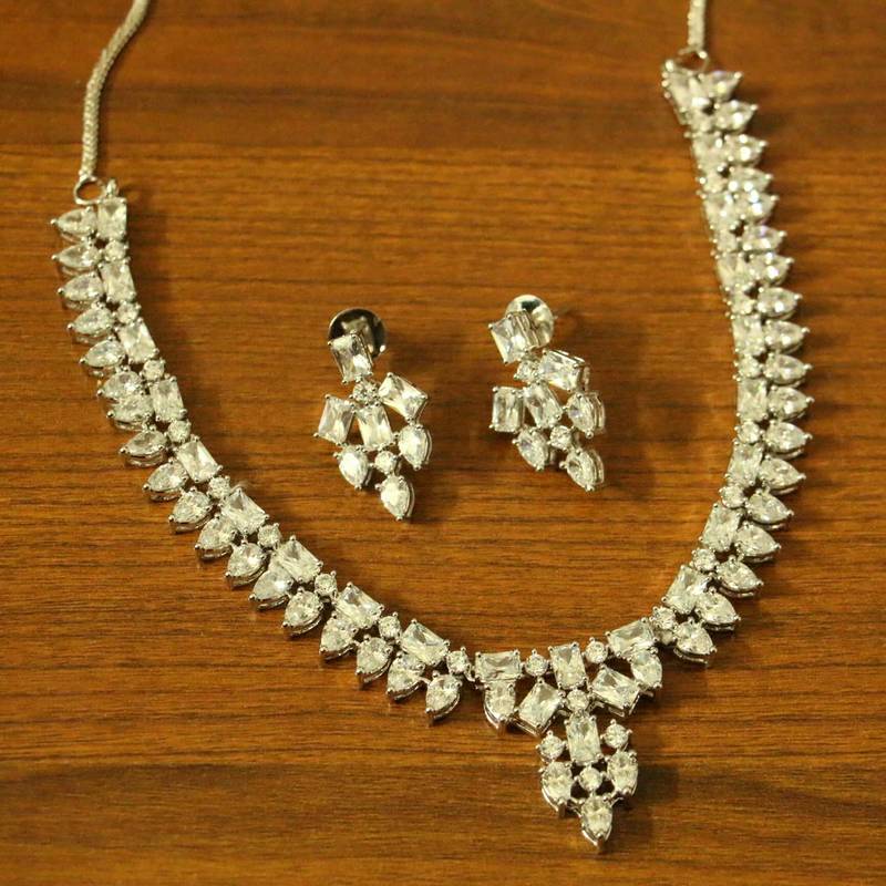 Diamond Look White Gold Plated Necklace Set