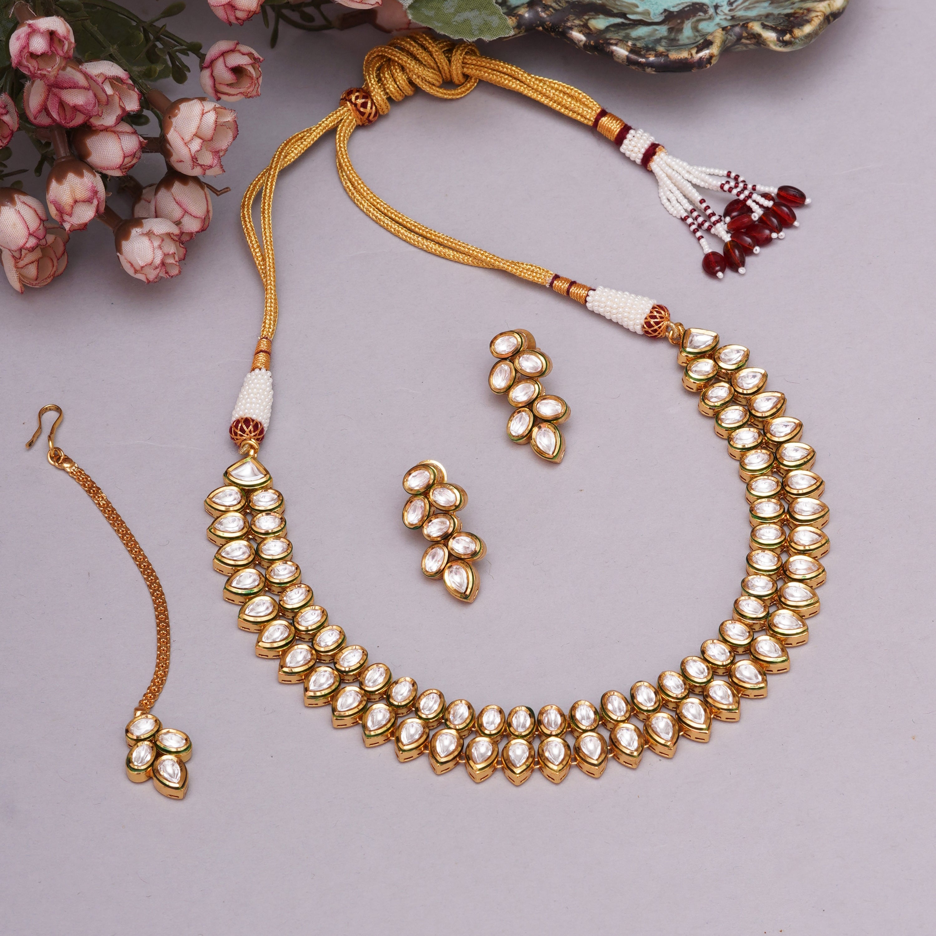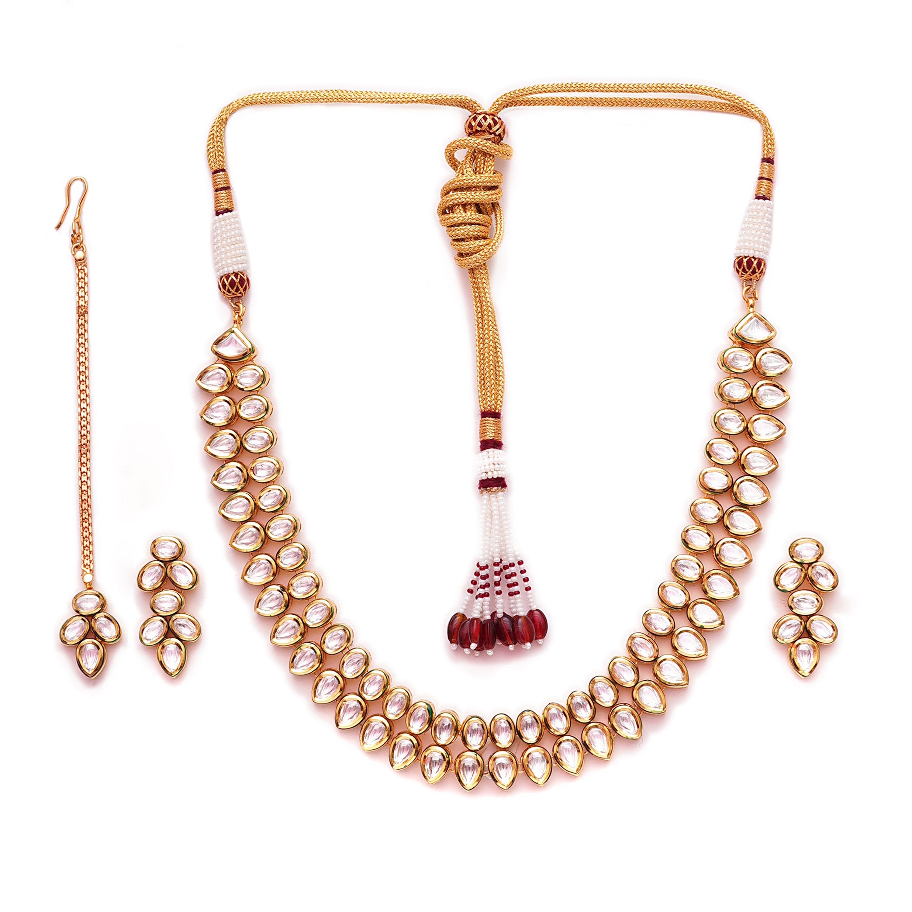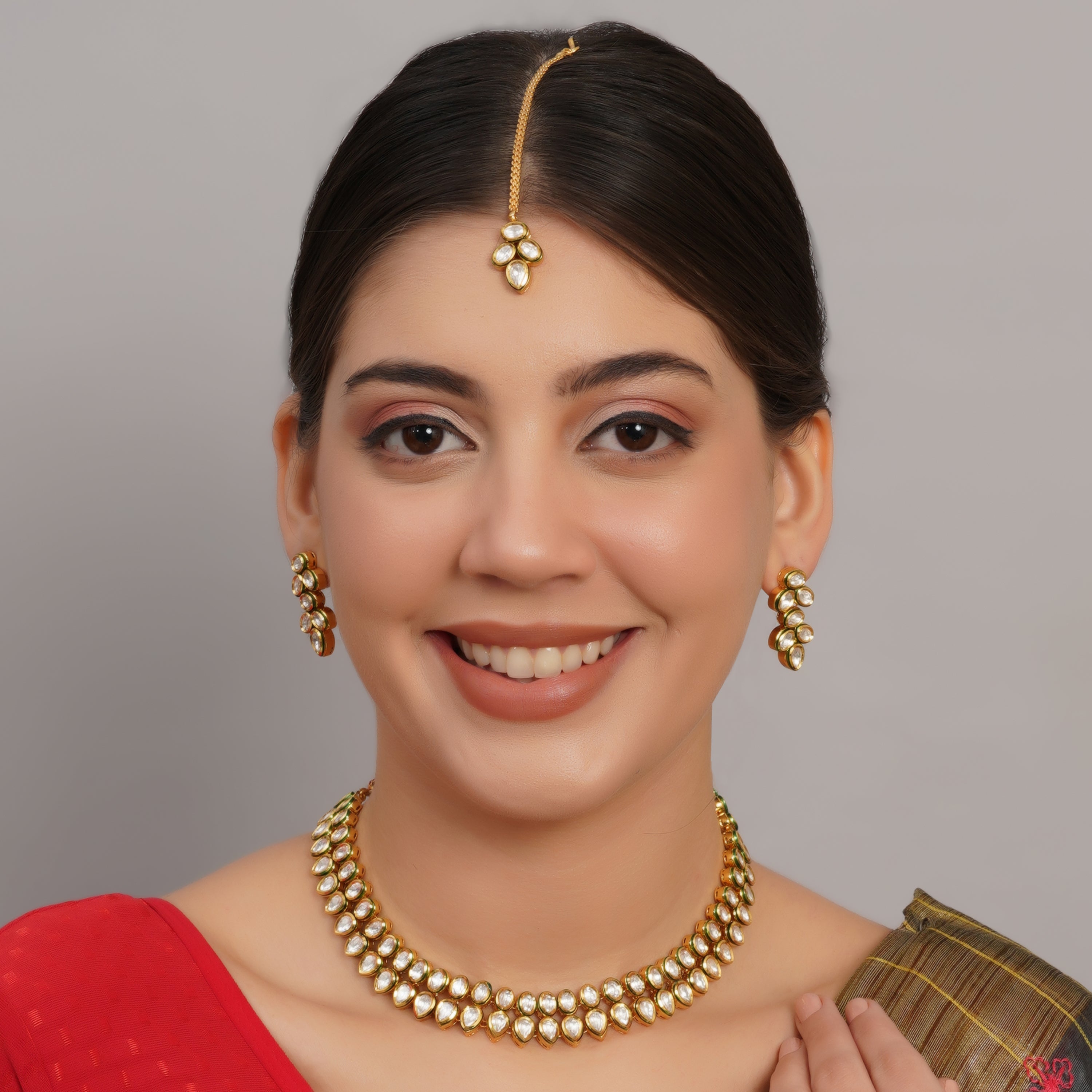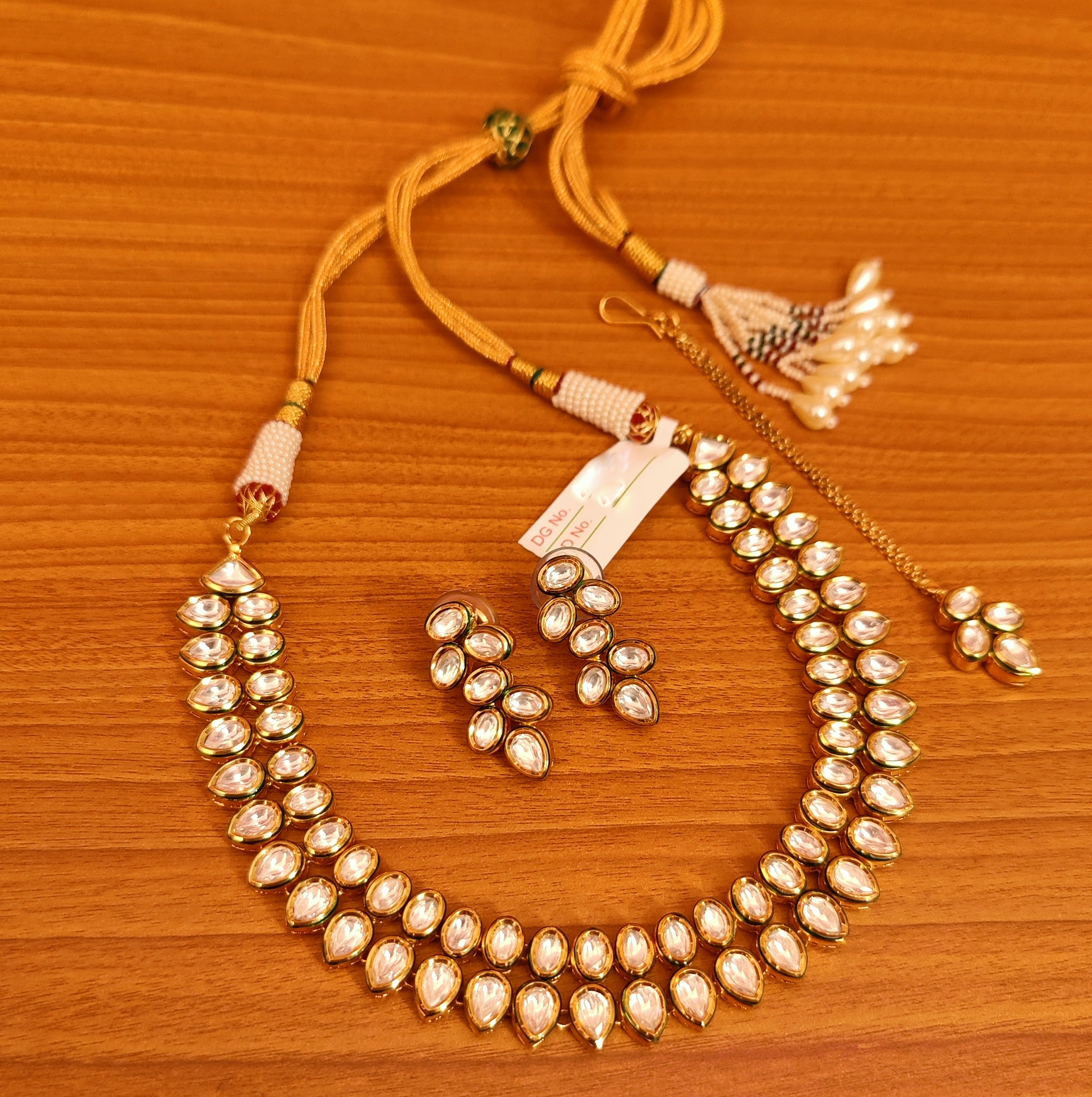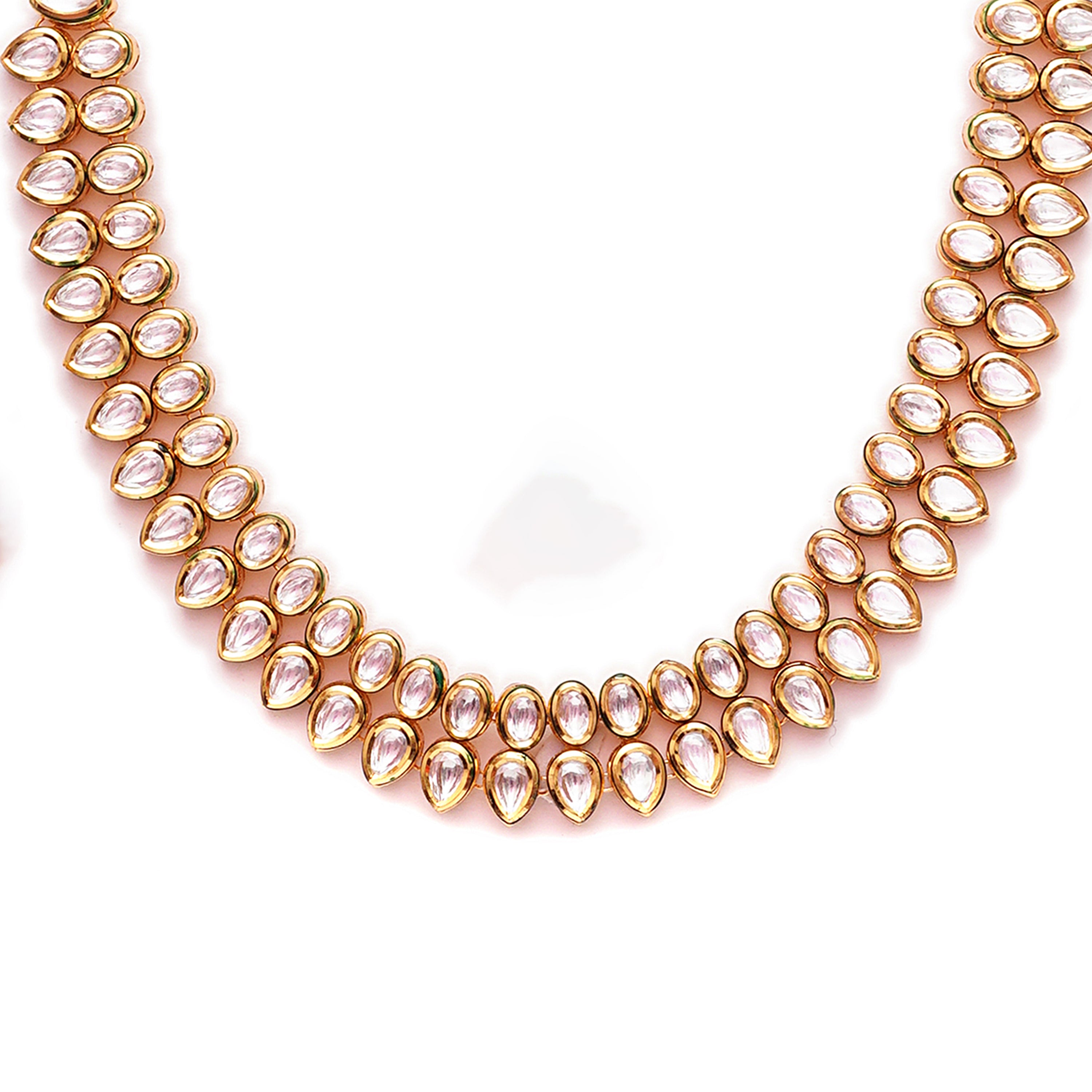 MULTI LAYERED PEAR SHAPED KUNDAN MEENAKARI POLKI NECKLACE SET