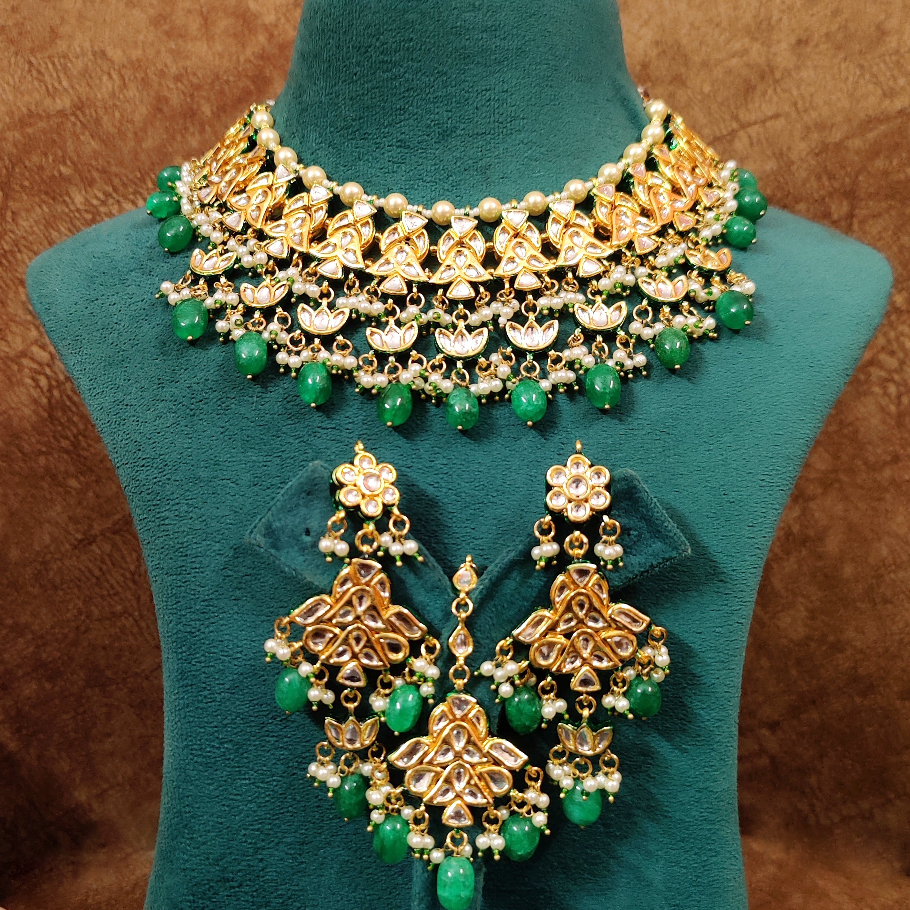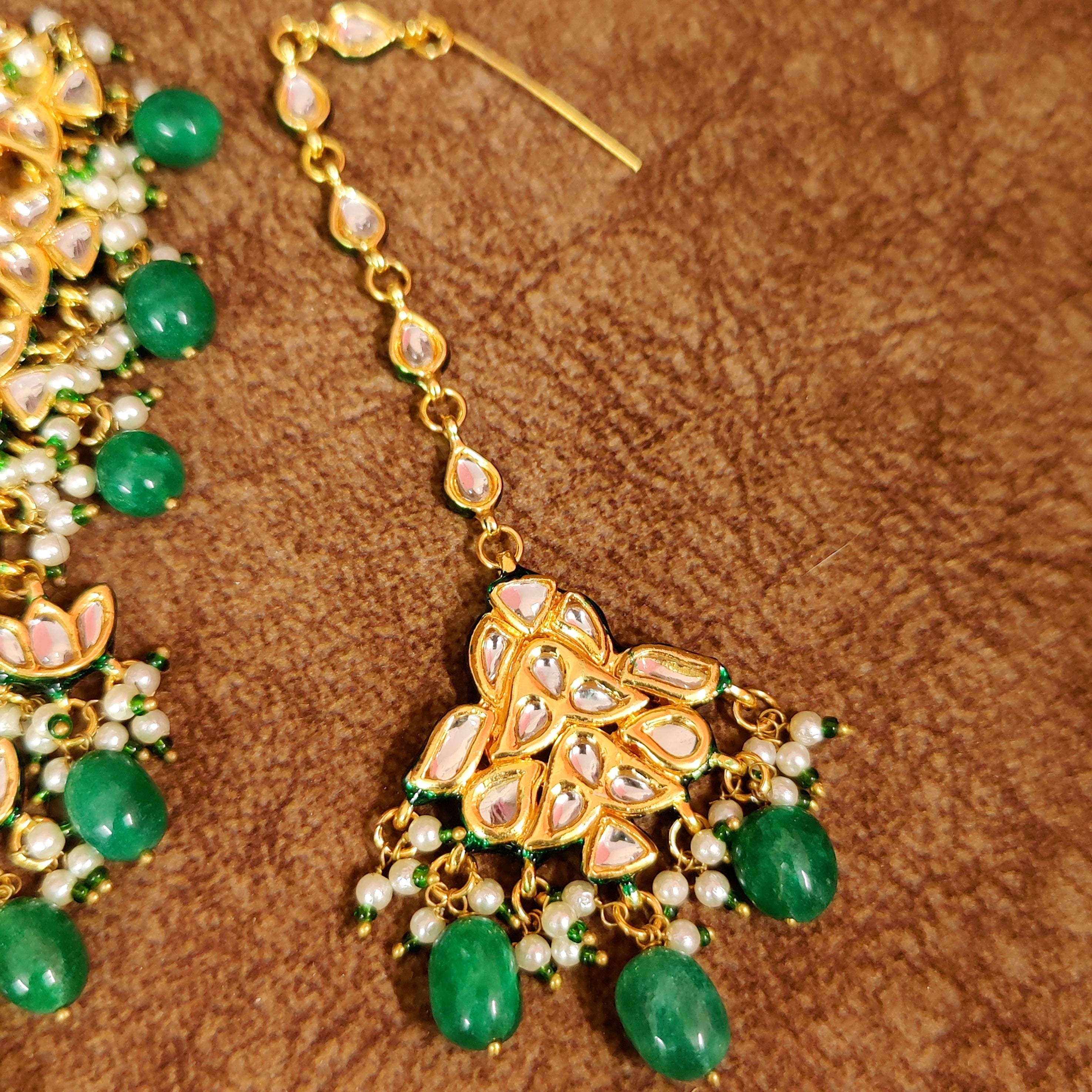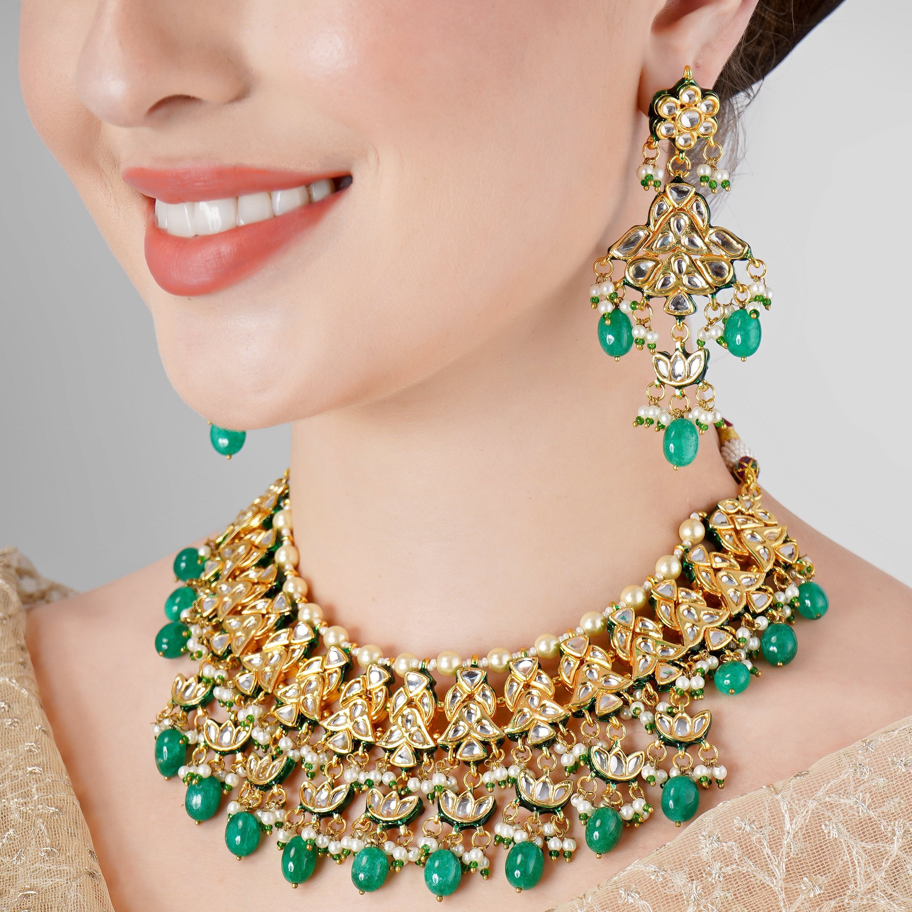 EMERALD LOOK KUNDAN POLKI WEDDING NECKLACE SET