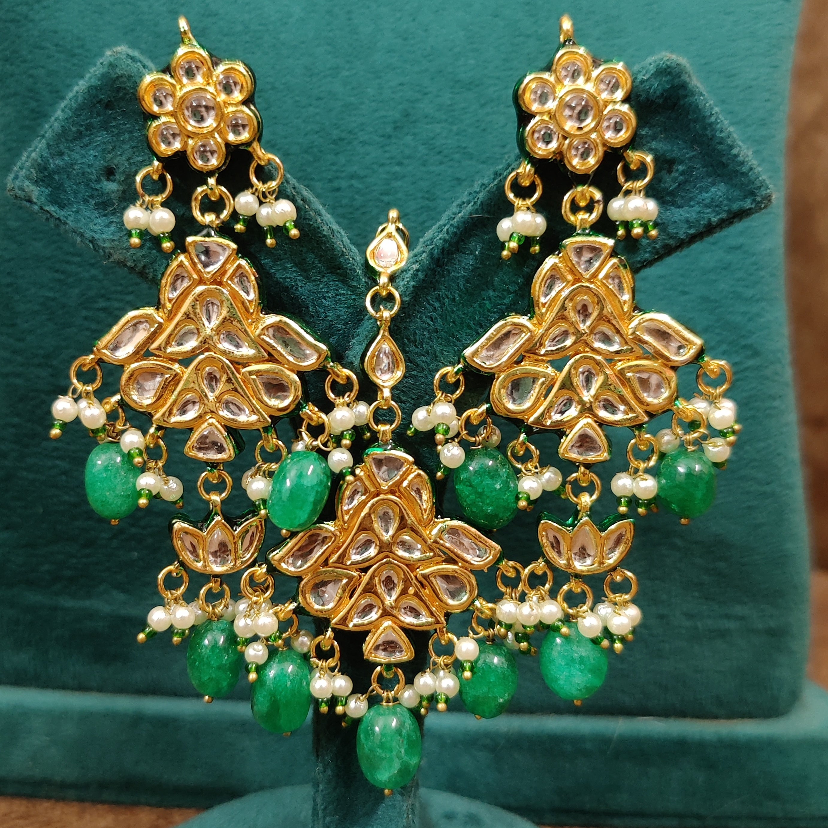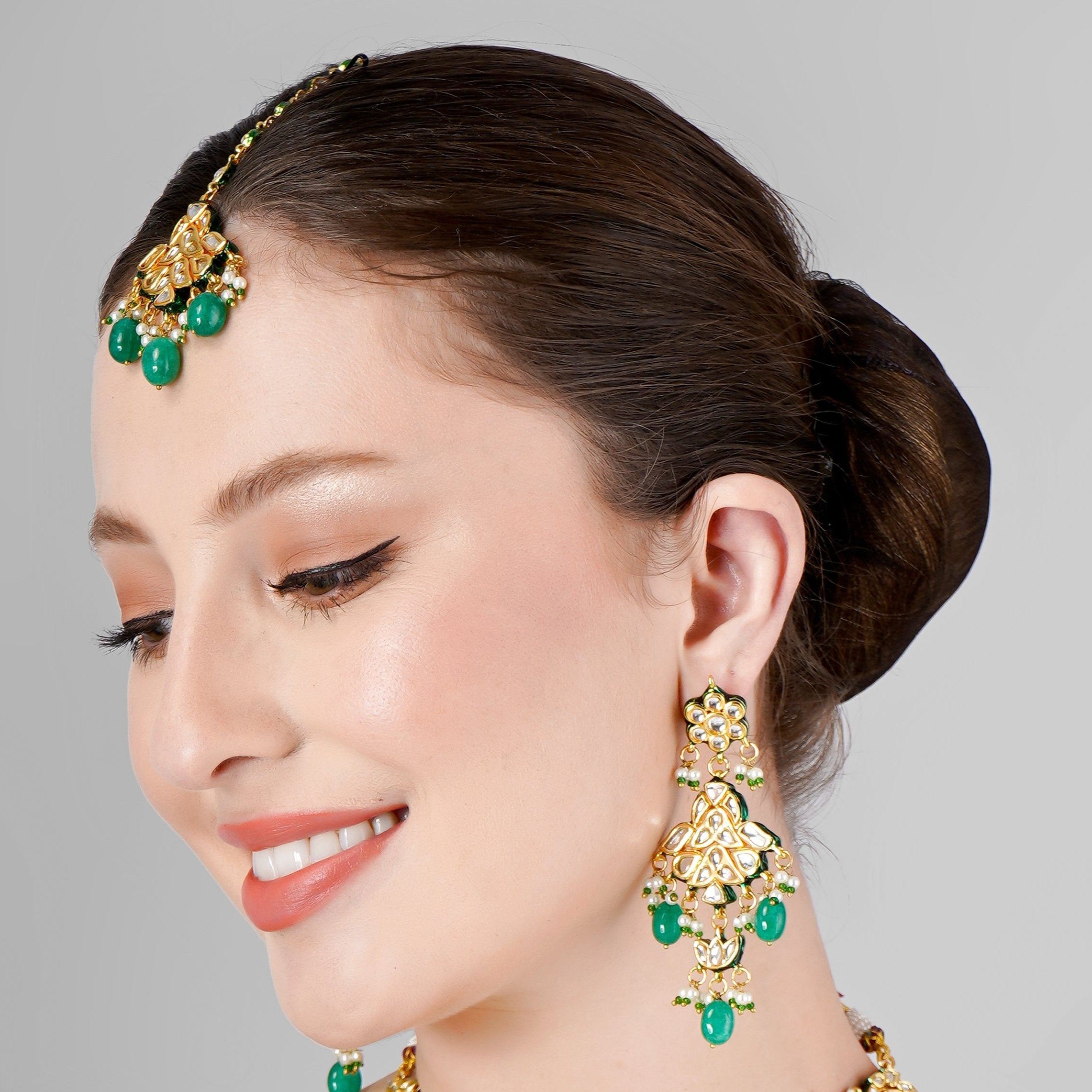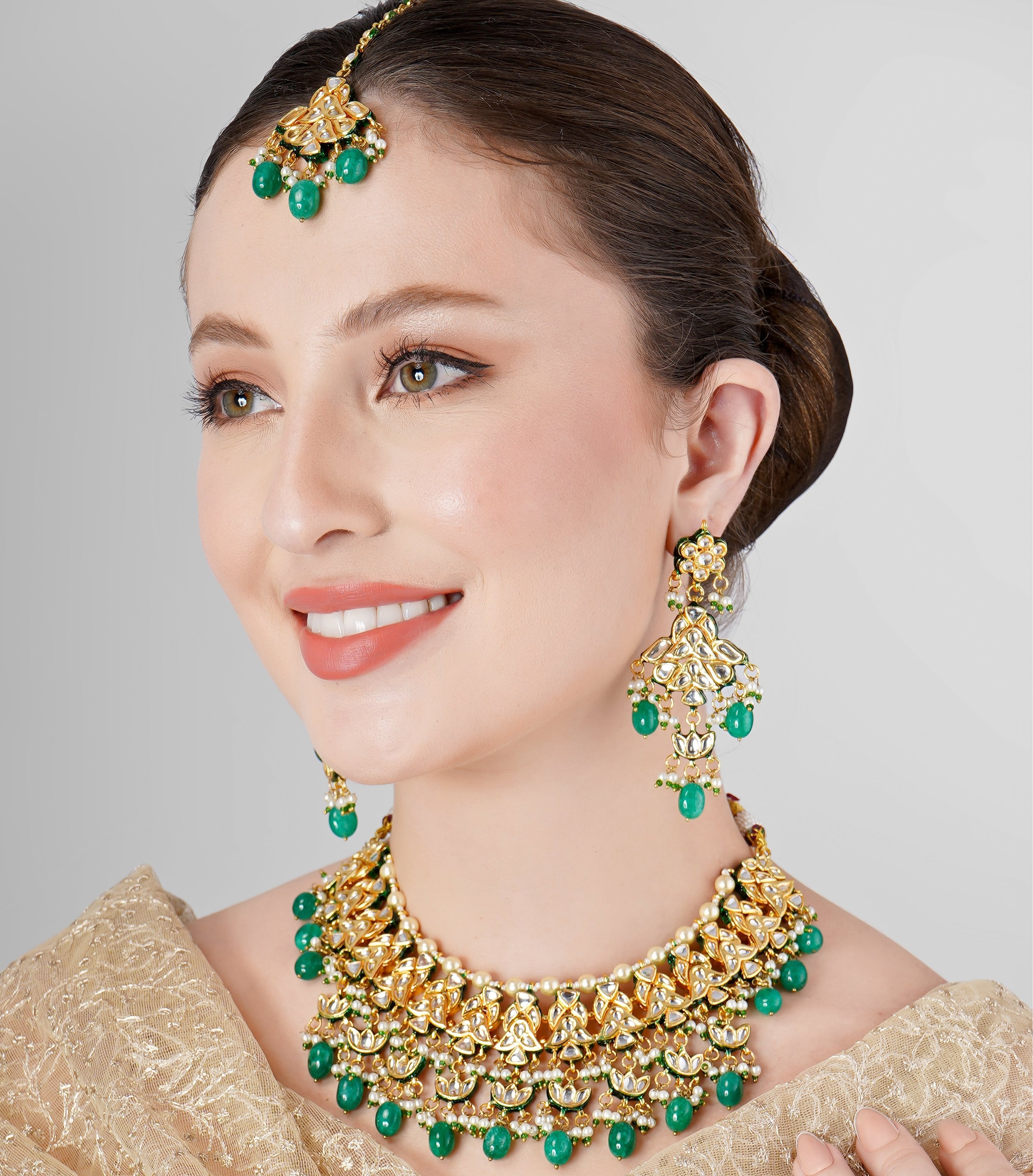EMERALD LOOK KUNDAN POLKI WEDDING NECKLACE SET