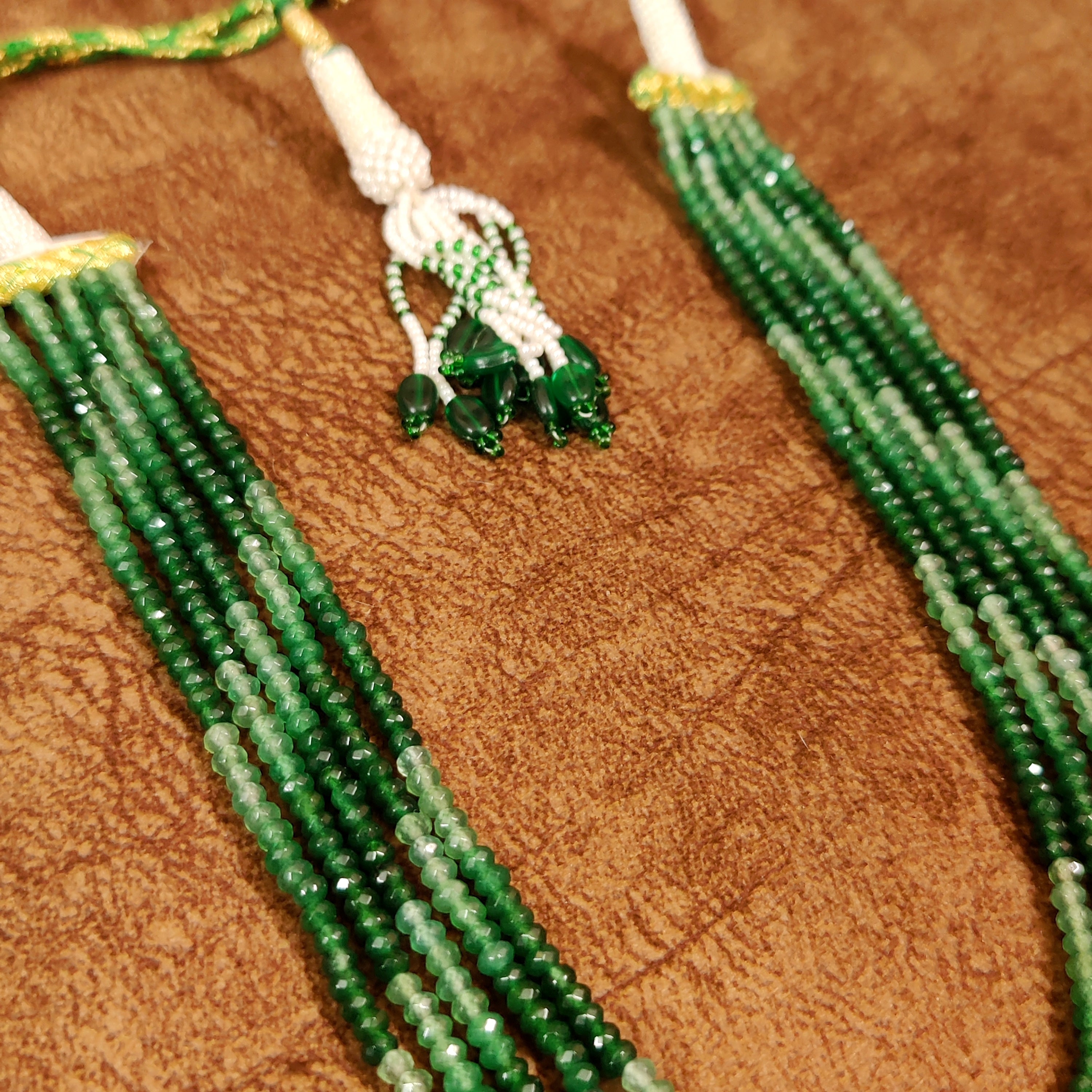 2 TONE EMERALD GREEN 5-LINE ONYX SEMI-PRECIOUS STONE NECKLACE