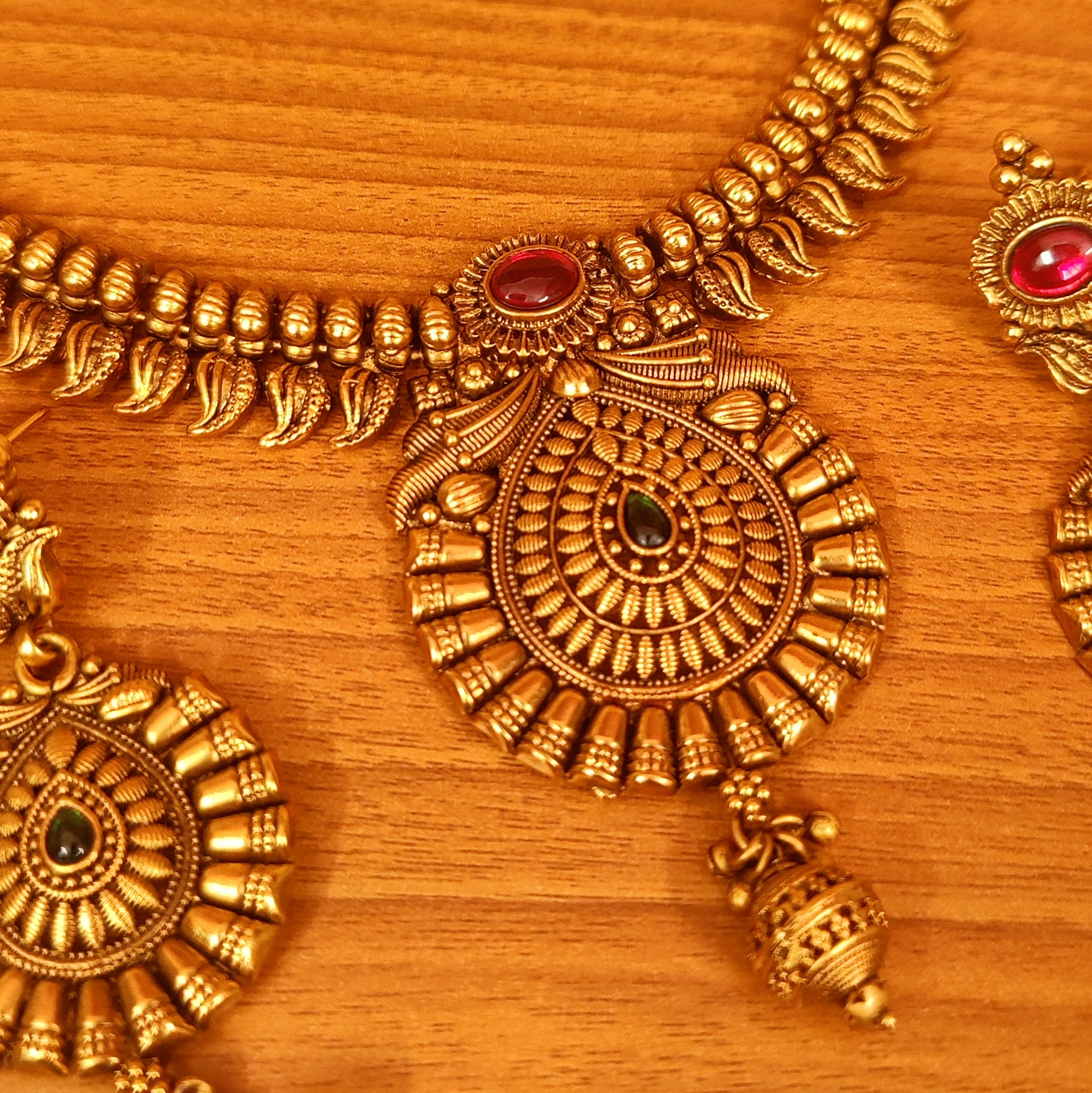 MULTICOLOUR GOLD PLATED ANTIQUE LOOK NECKLACE SET