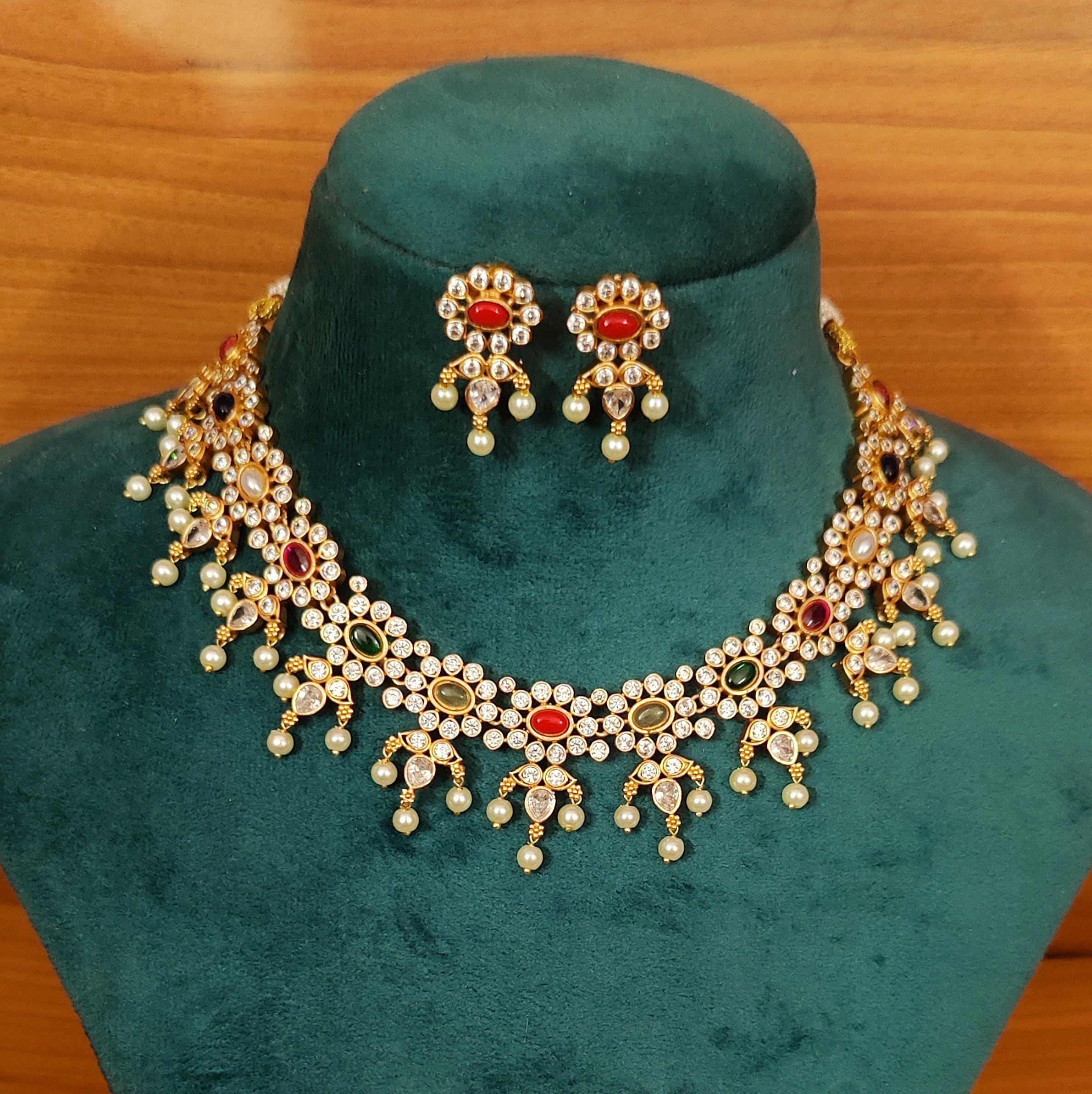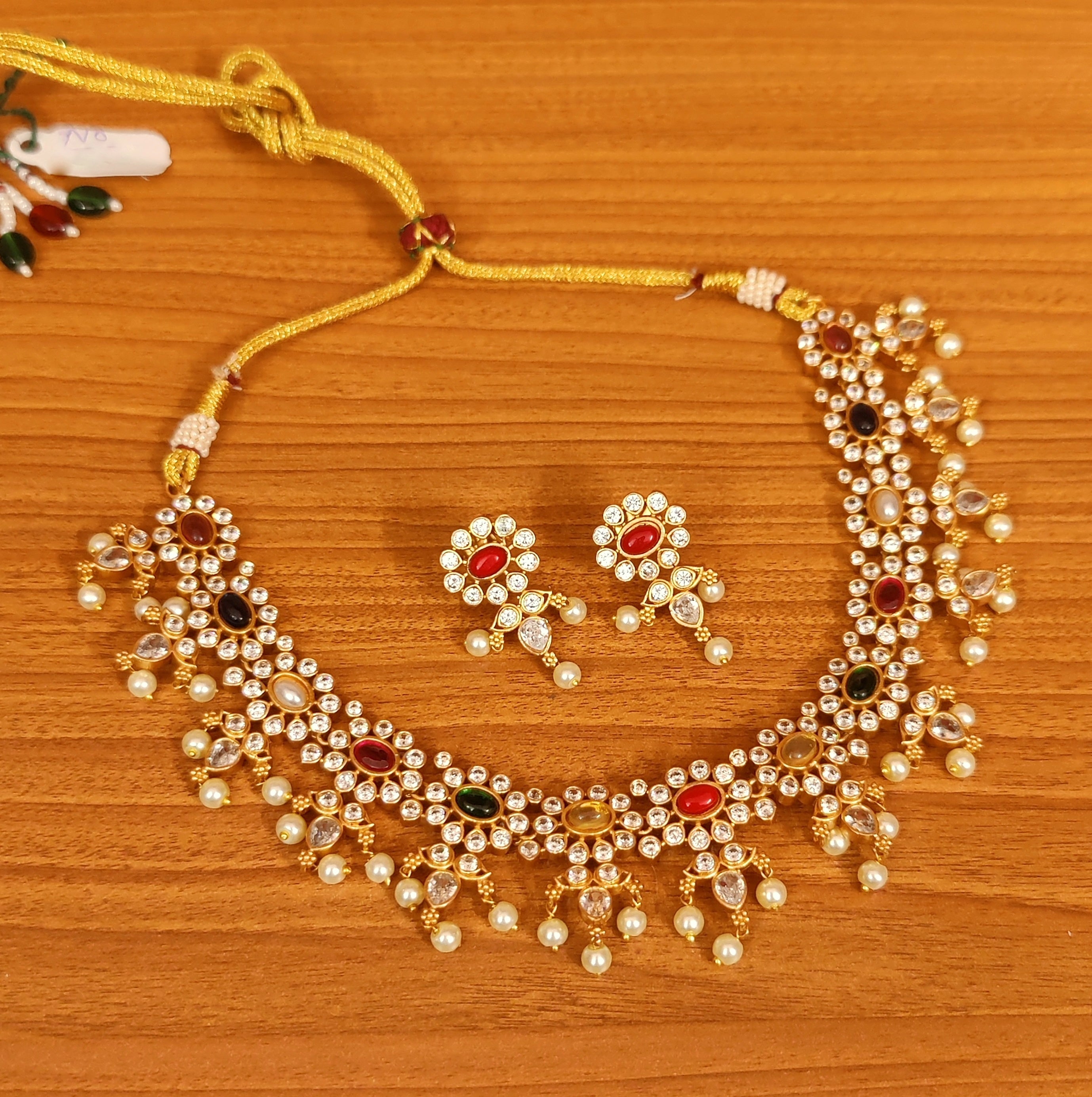 NAVRATAN LOOK MATT GOLD CZ STUDDED NECKLACE SET