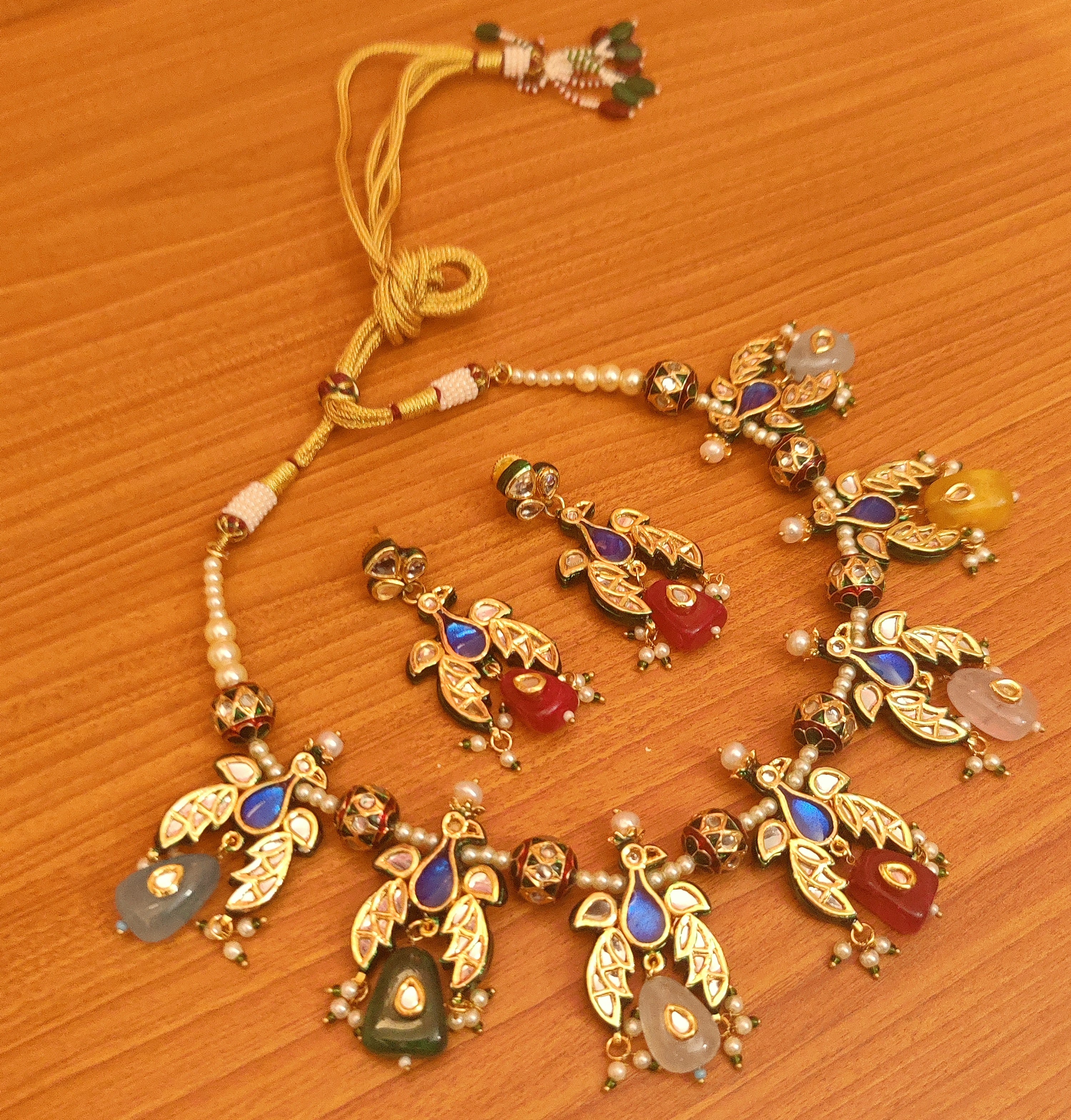 PEACOCK KUNDAN POLKI MEENAKARI ETHNIC NECKLACE SET