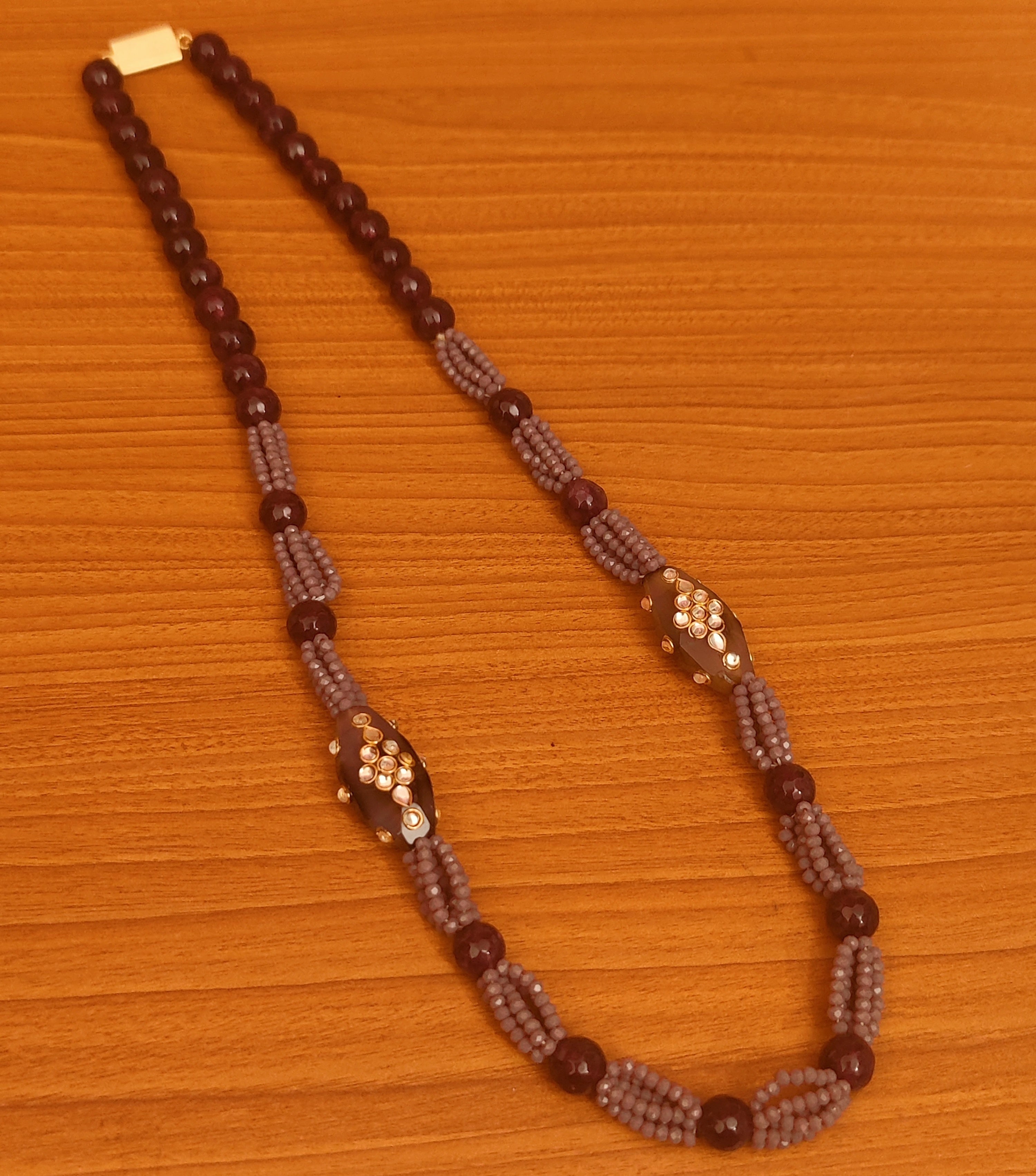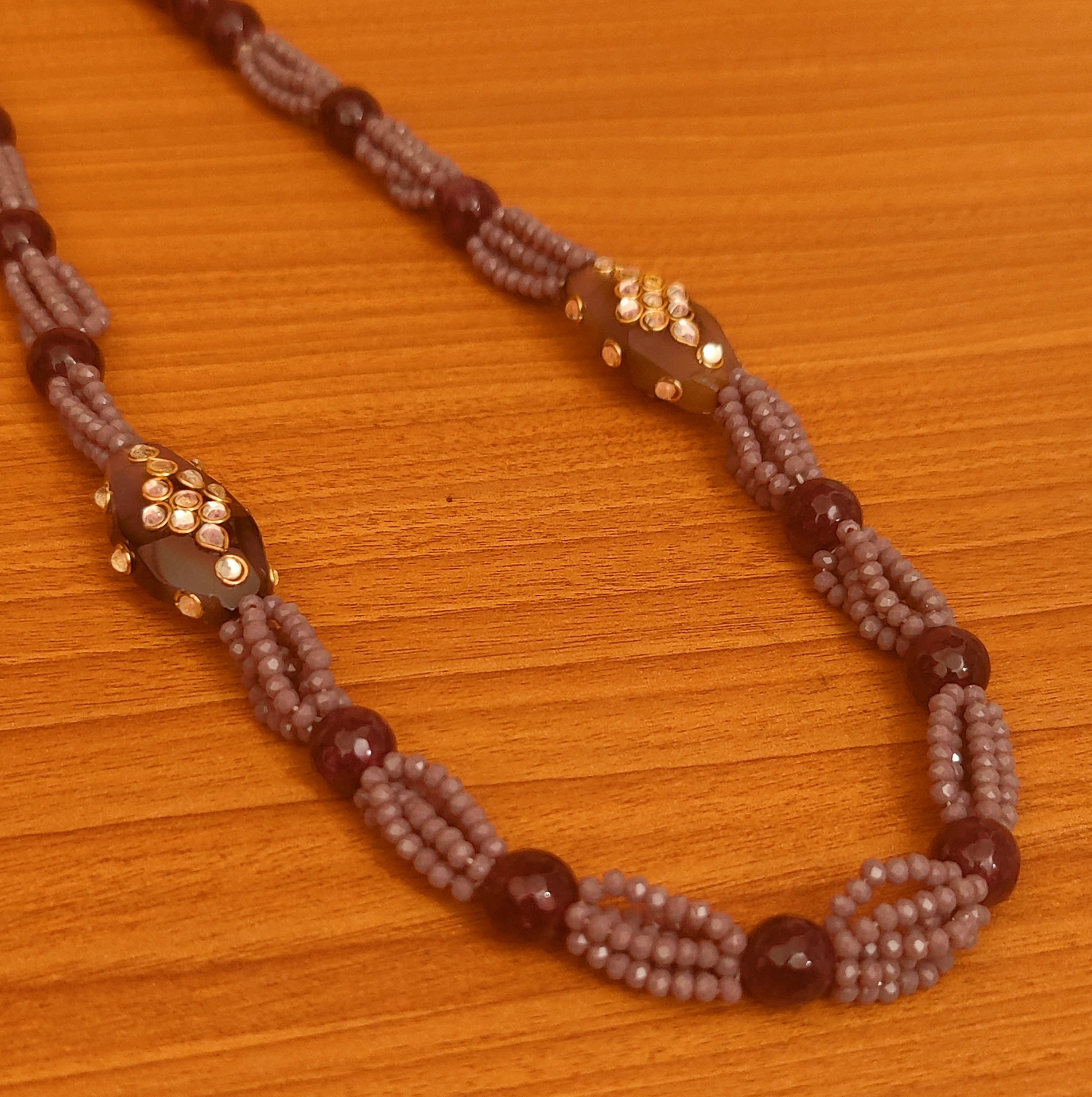 PURPLE QUARTZ SEMI PRECIOUS NECKLACE WITH KUNDAN BEADS