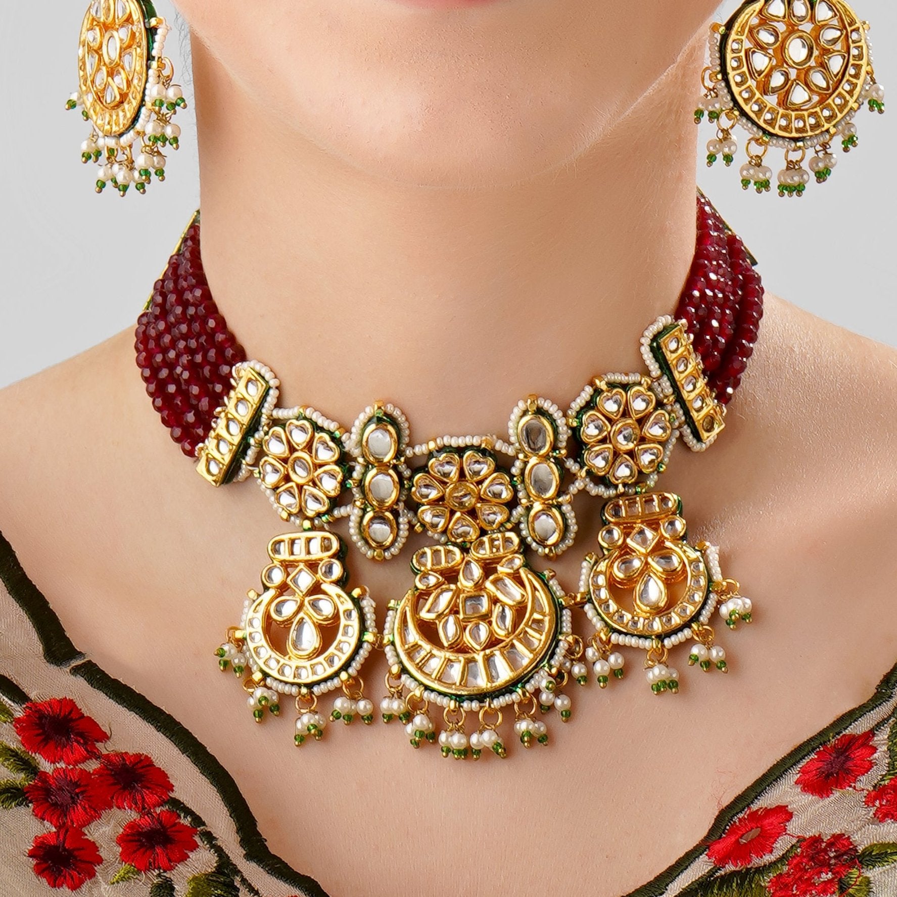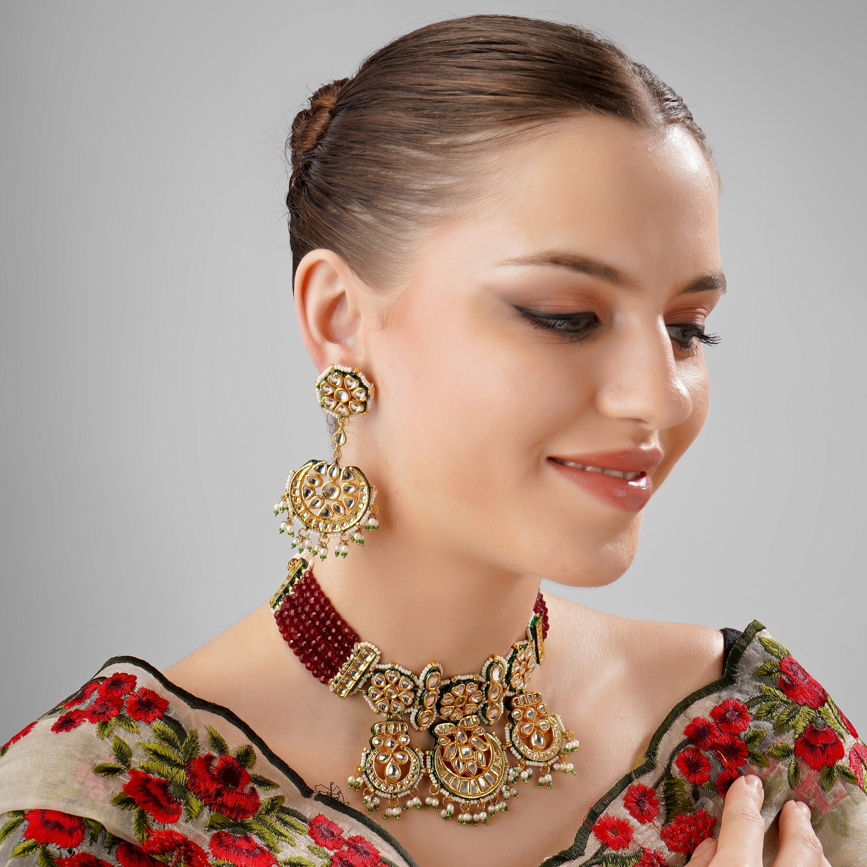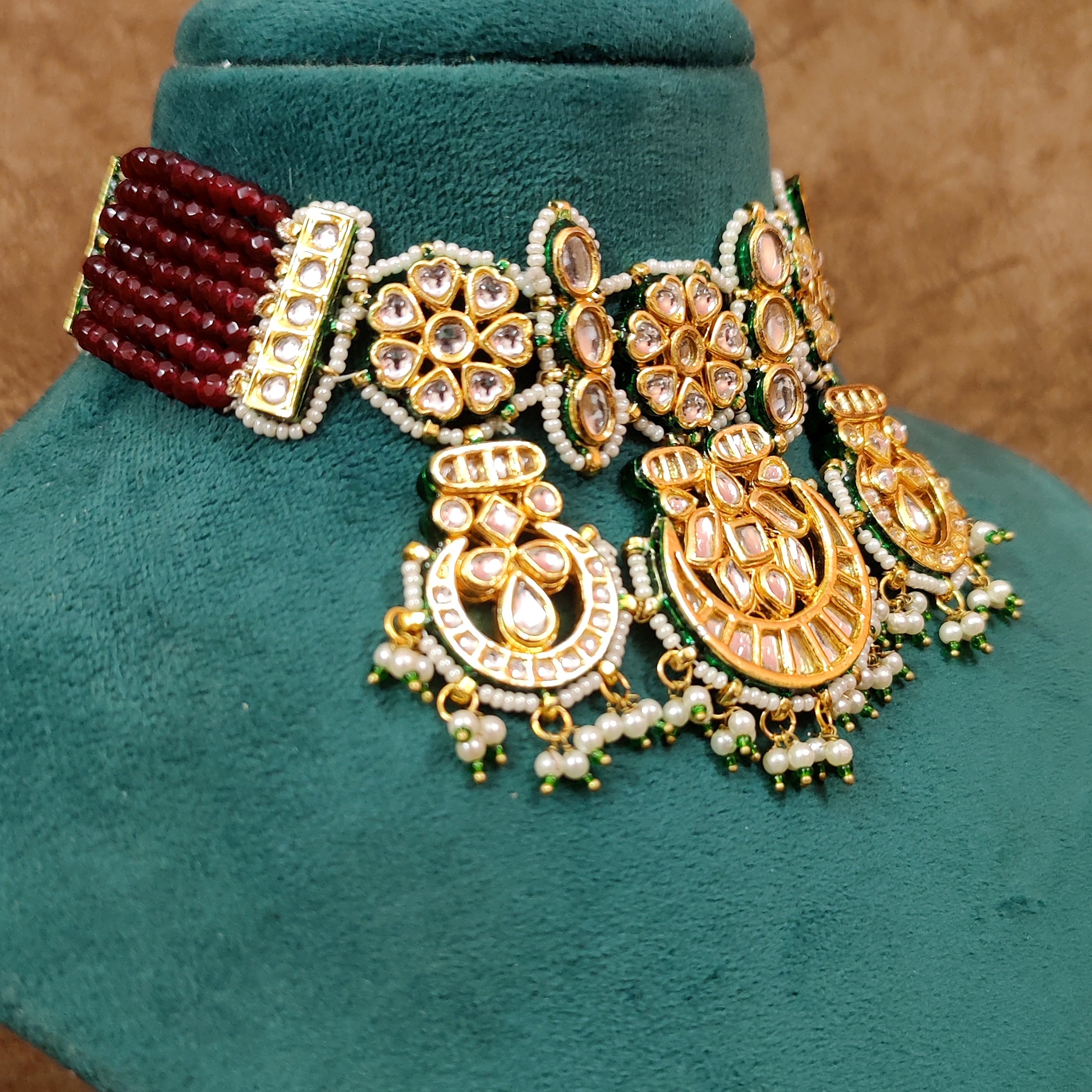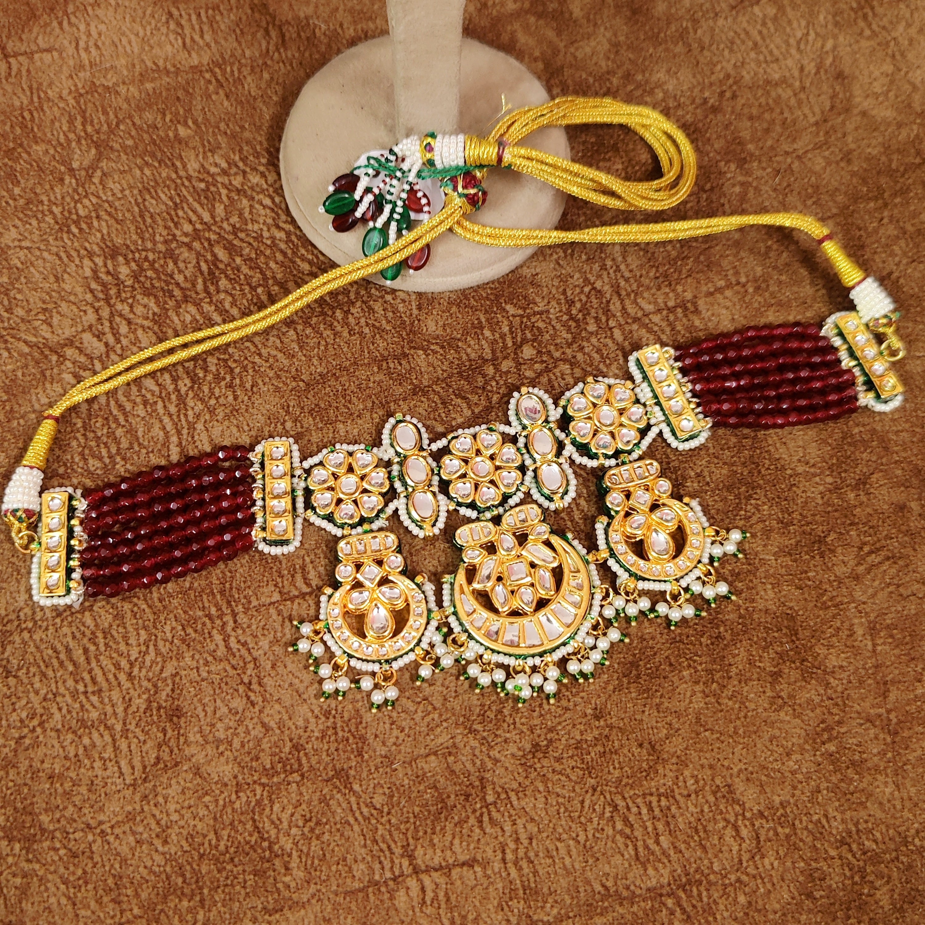 RUBY KUNDAN MEENAKARI SEMI PRECIOUS CHOKER SET