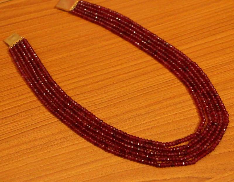 Ruby Pink Colour Semi Precious Five Line Necklace
