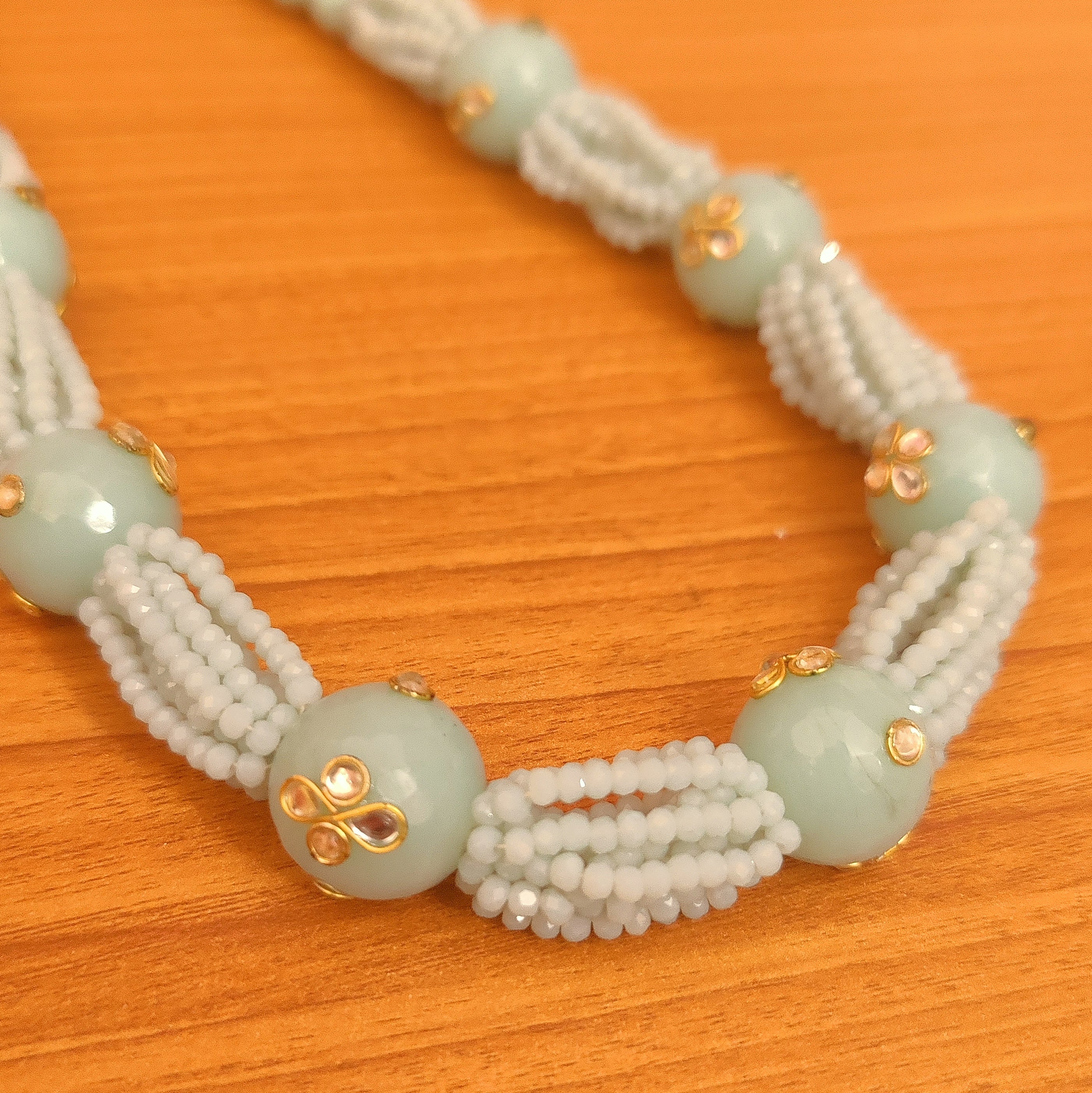 TURQUOISE COLOUR KUNDAN BEADS ETHNIC NECKLACE