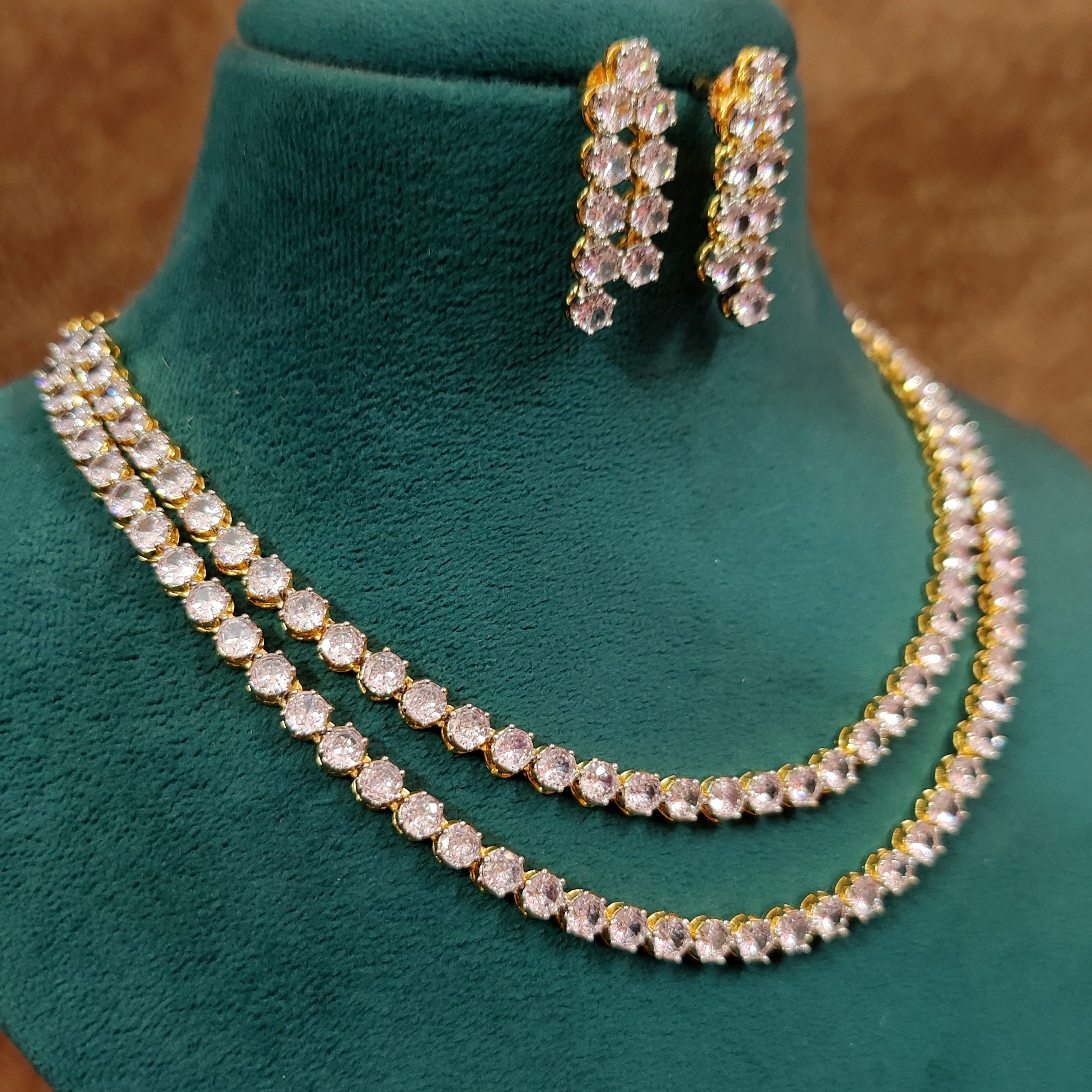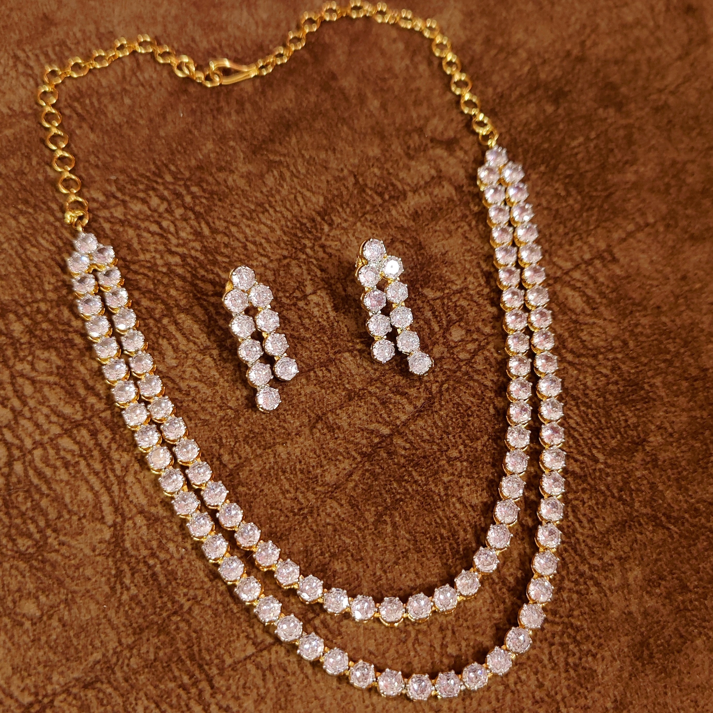 2-LAYERED SOLITAIRE LOOK GOLD PLATED NECKLACE SET