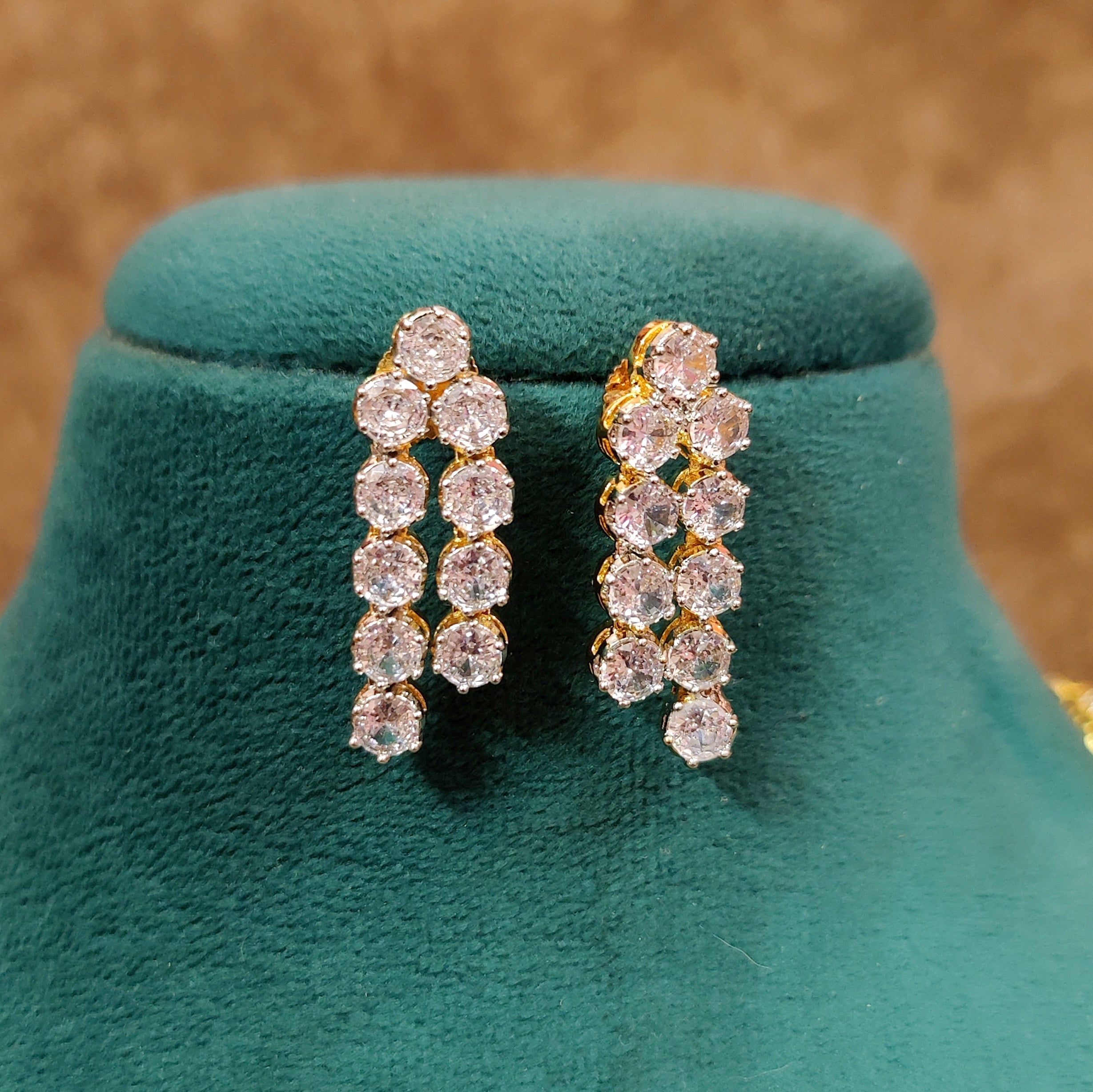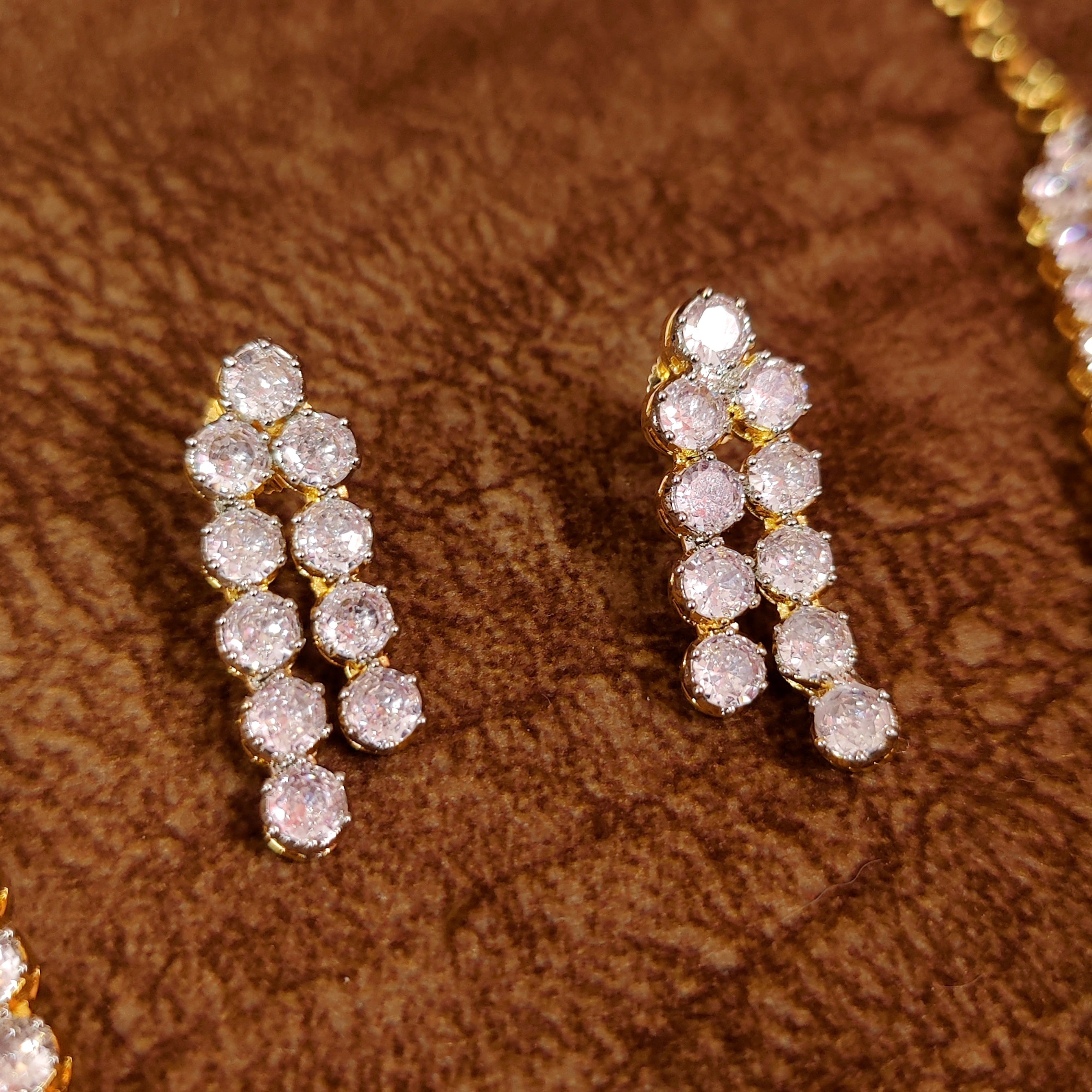 This beautiful necklace set is handcrafted in brass alloy with imitation american diamonds work of very fine quality . This necklace set is coated with 18 kt gold polish which give them a unique look . An absolutely stunning piece to own and are very light in weight.