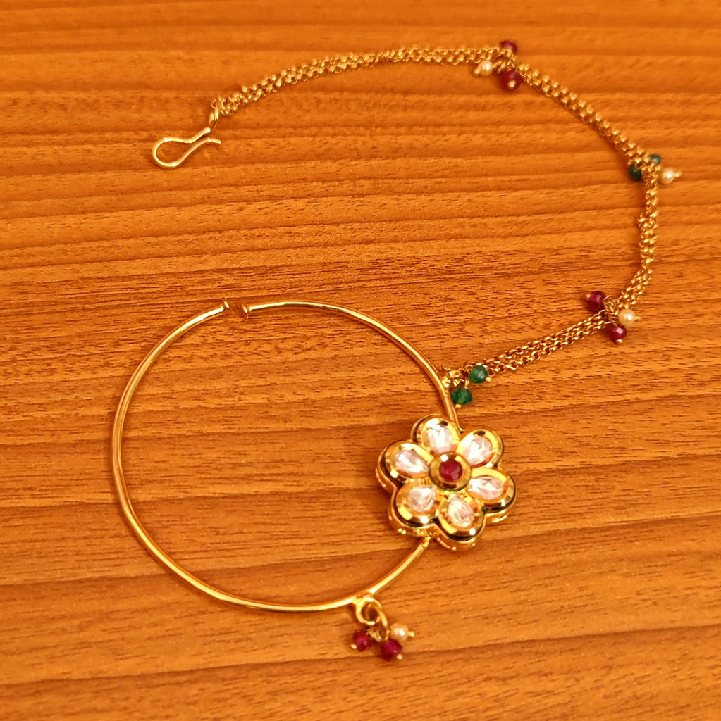 FLOWER KUNDAN MEENAKARI GOLD LOOK BRIDAL NOSE RING