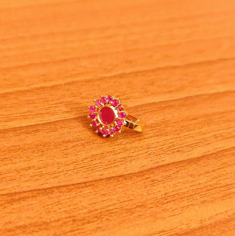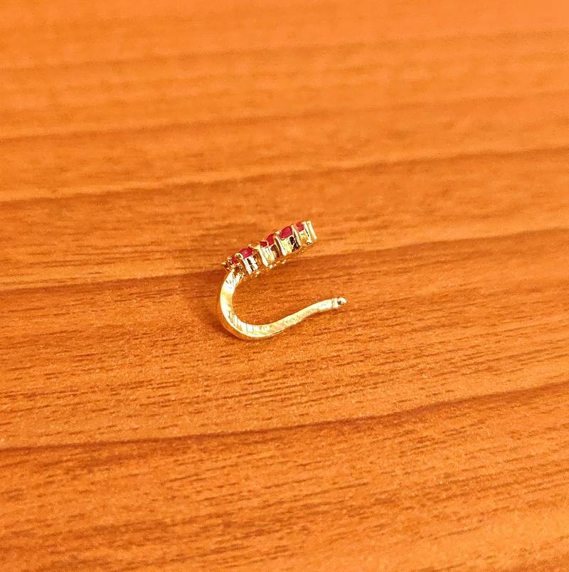 This Beautiful Nose Ring Is Handcrafted In Brass Alloy With Imitation Red Colour Stone Of Very Fine Quality . The Nose Ring Is Very Intricate And Very Light In Weight And Is Plated In 18kt Gold Plating As Done On The Real Gold Jewellery.
