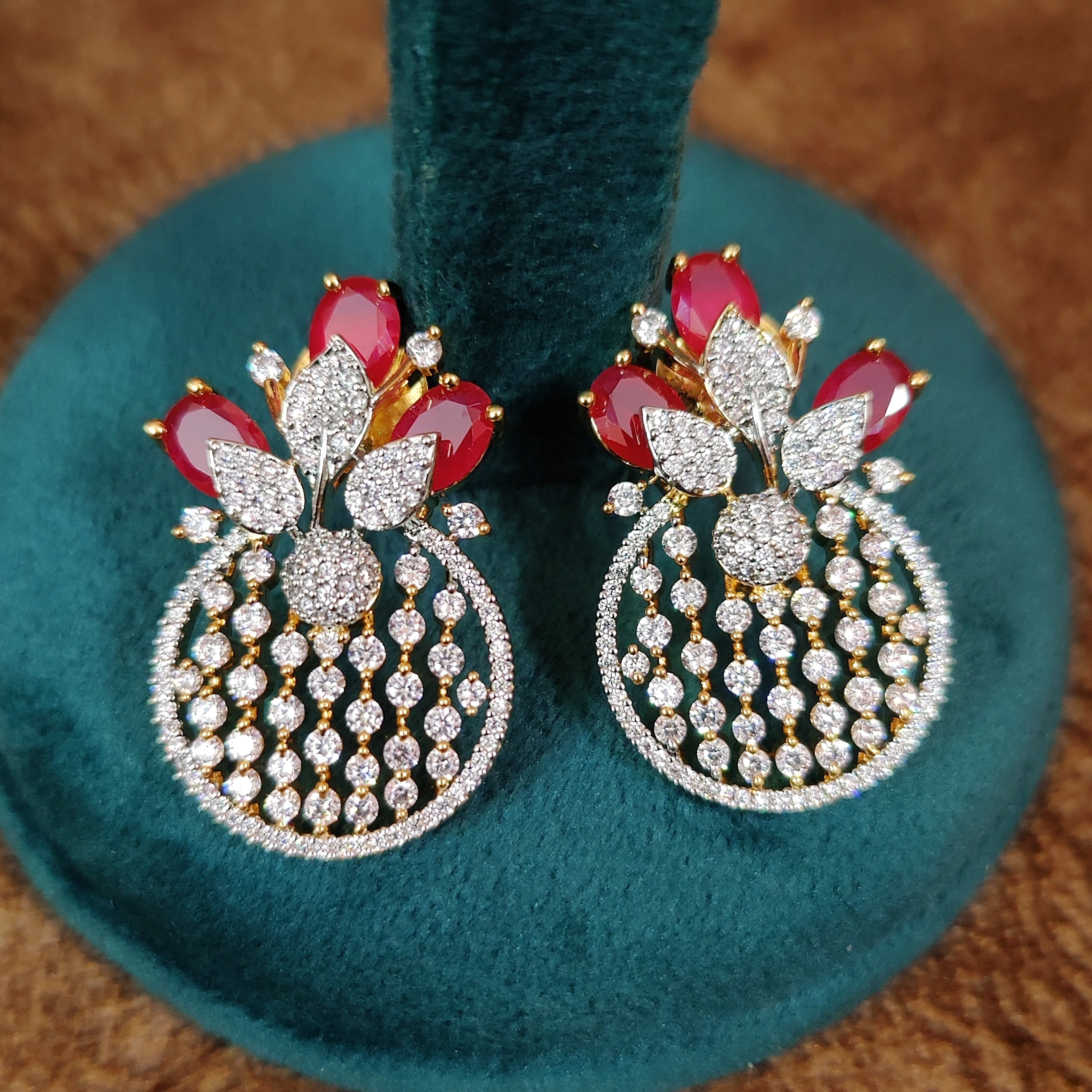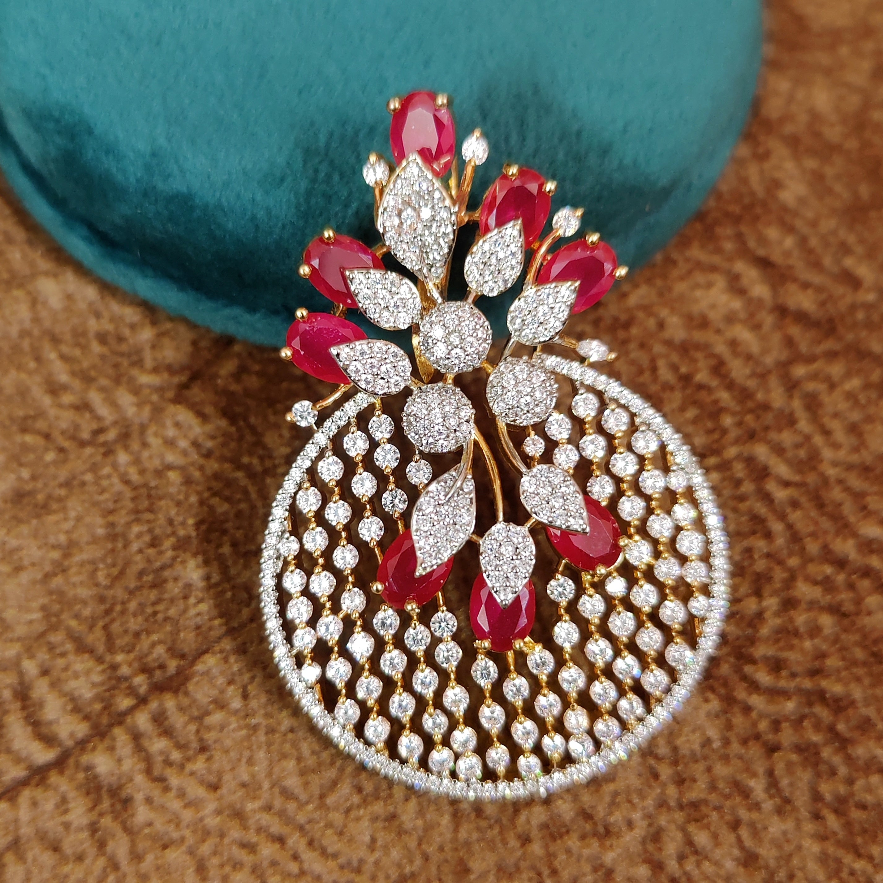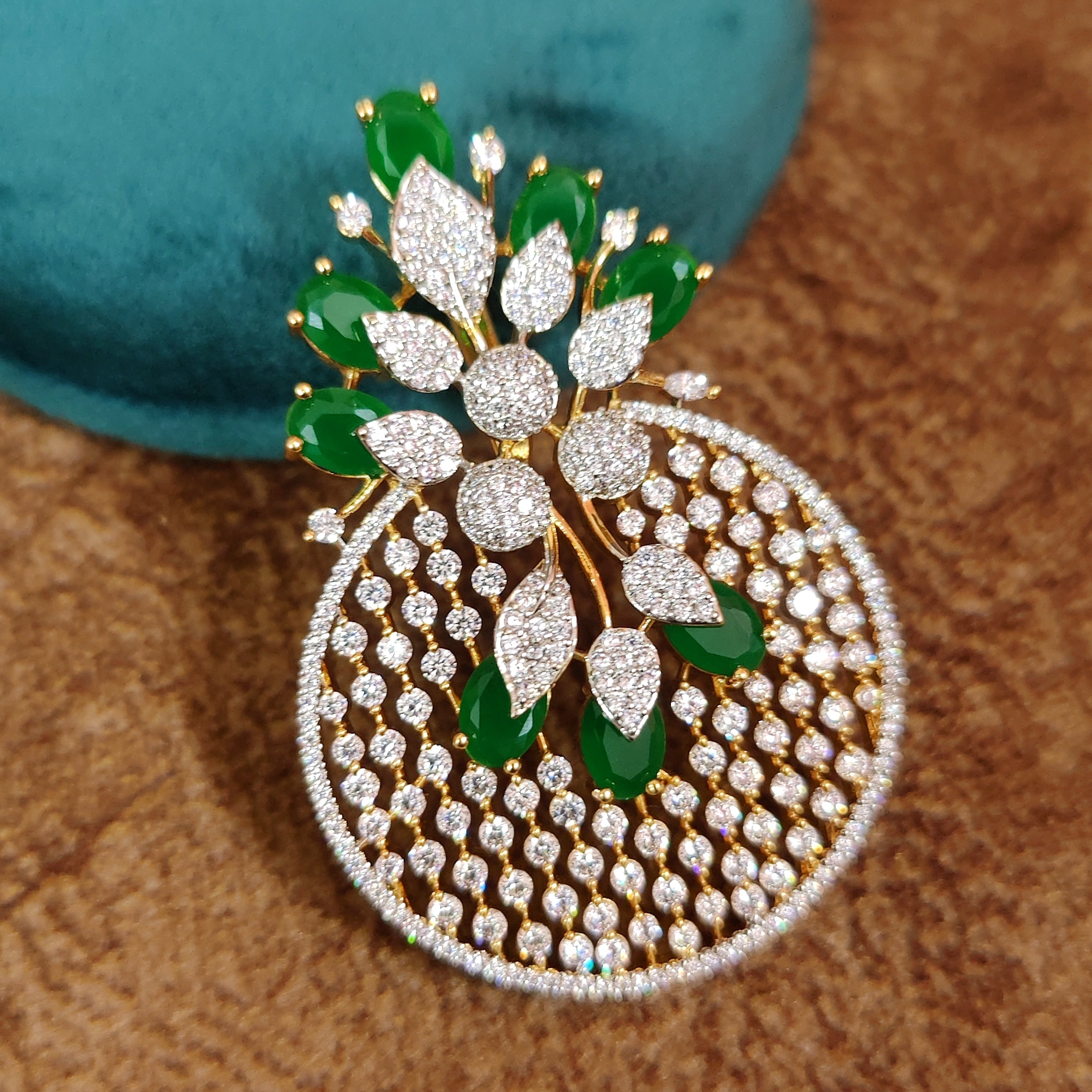 This diamond look pendant set is made in silver alloy with imitation emerald colour green stones and american diamond stones of extremely fine quality. This gorgeous pendant set is handcrafted to perfection with superior quality coloured & cz stones. This pendant set is plated with 18kt nickle free gold & black rhodium that gives the design a real gold look & comes with a matching pair of perfect size earrings which are absolutely gorgeous and are very light in weight.