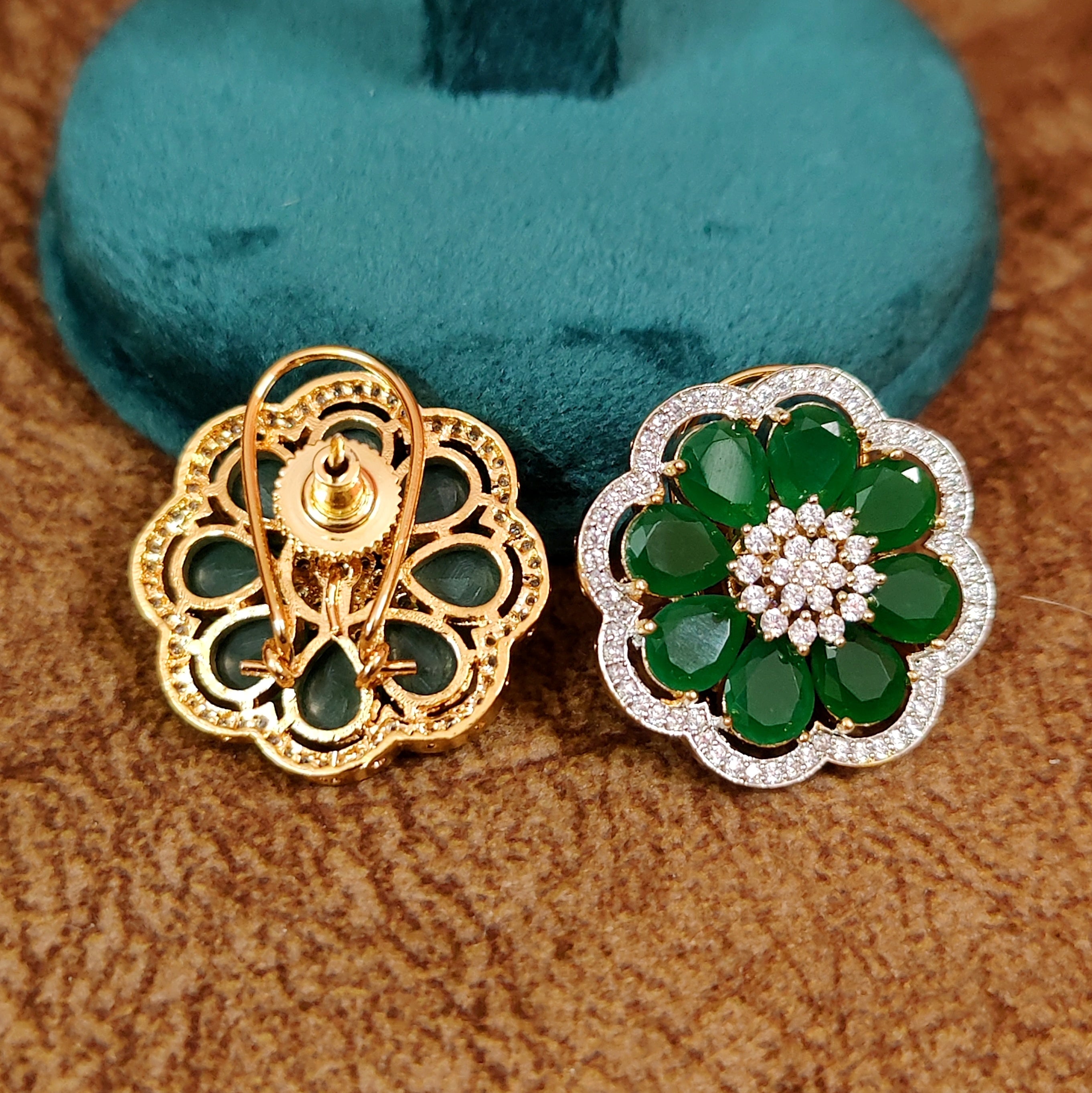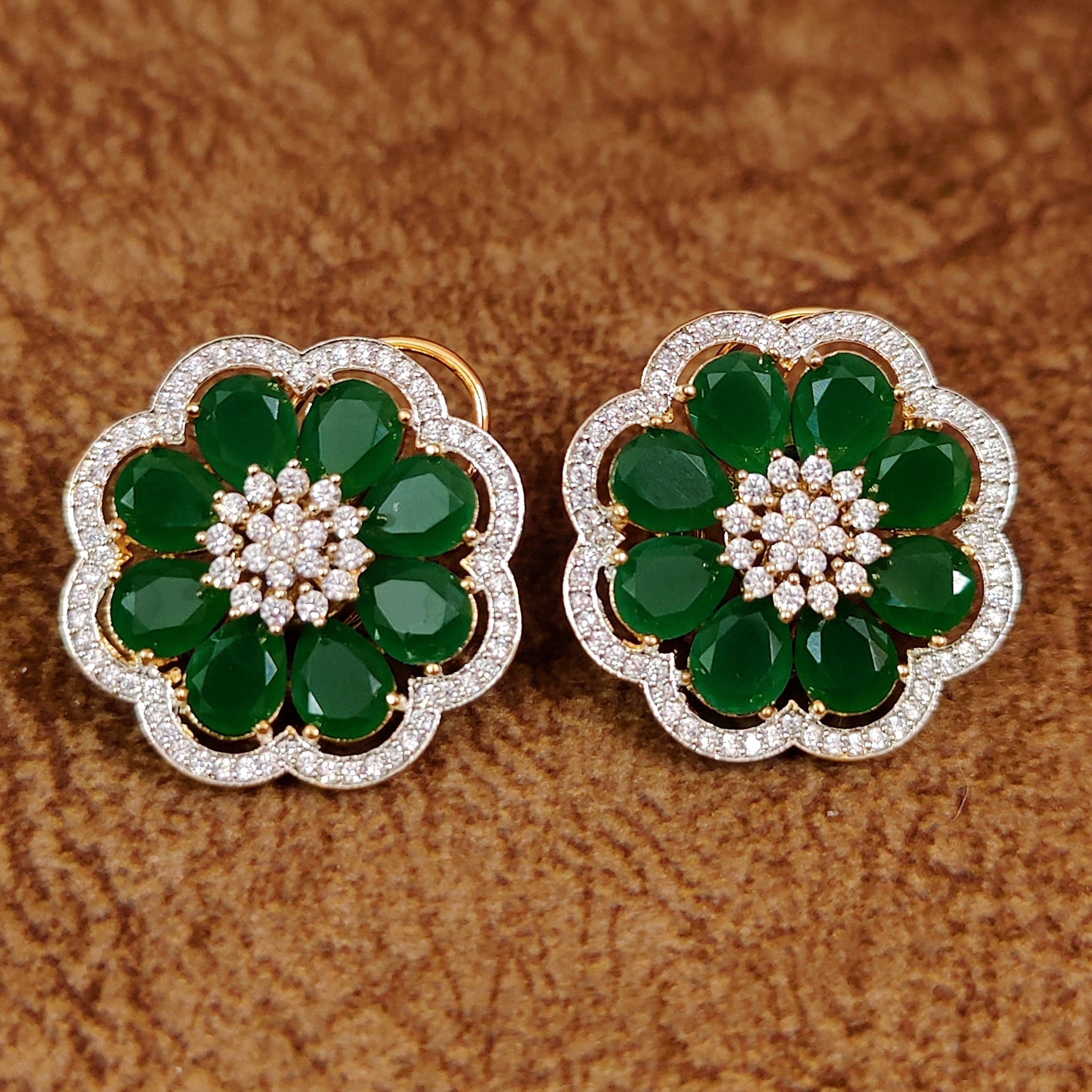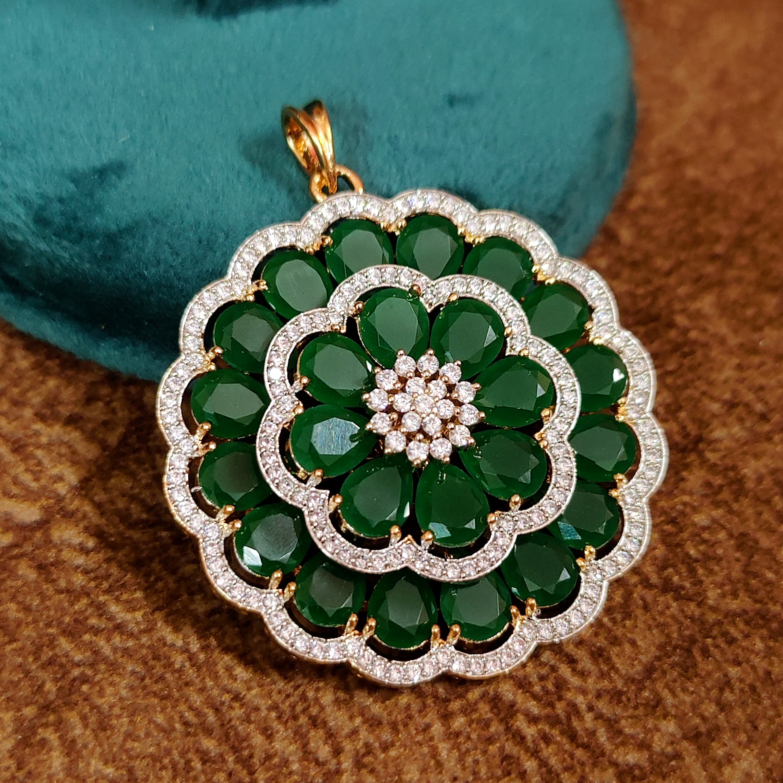 EMERALD COLOUR FLORAL CZ PENDANT SET