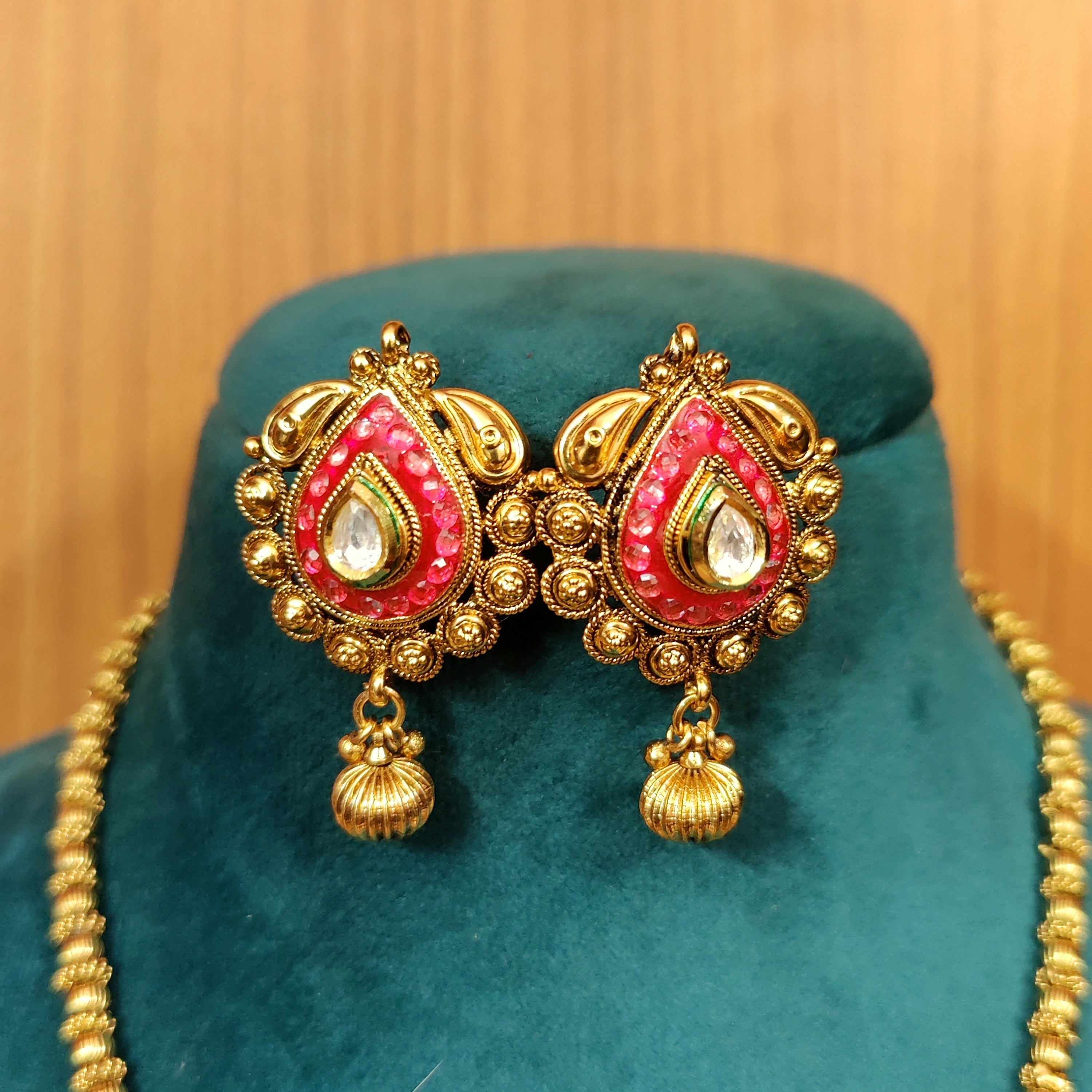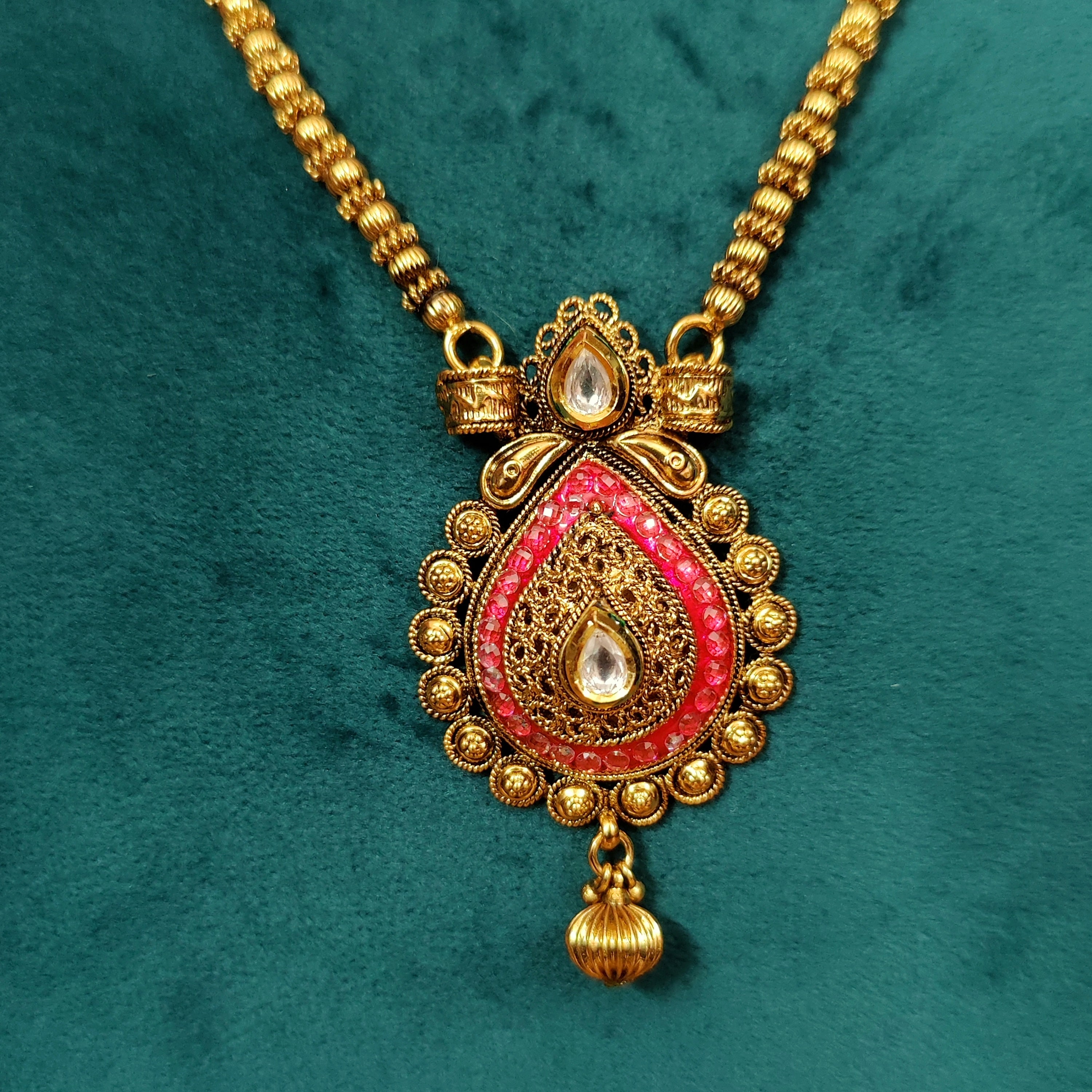 ANTIQUE GOLD LOOK RUBY STUDDED SIMPLE PENDANT SET