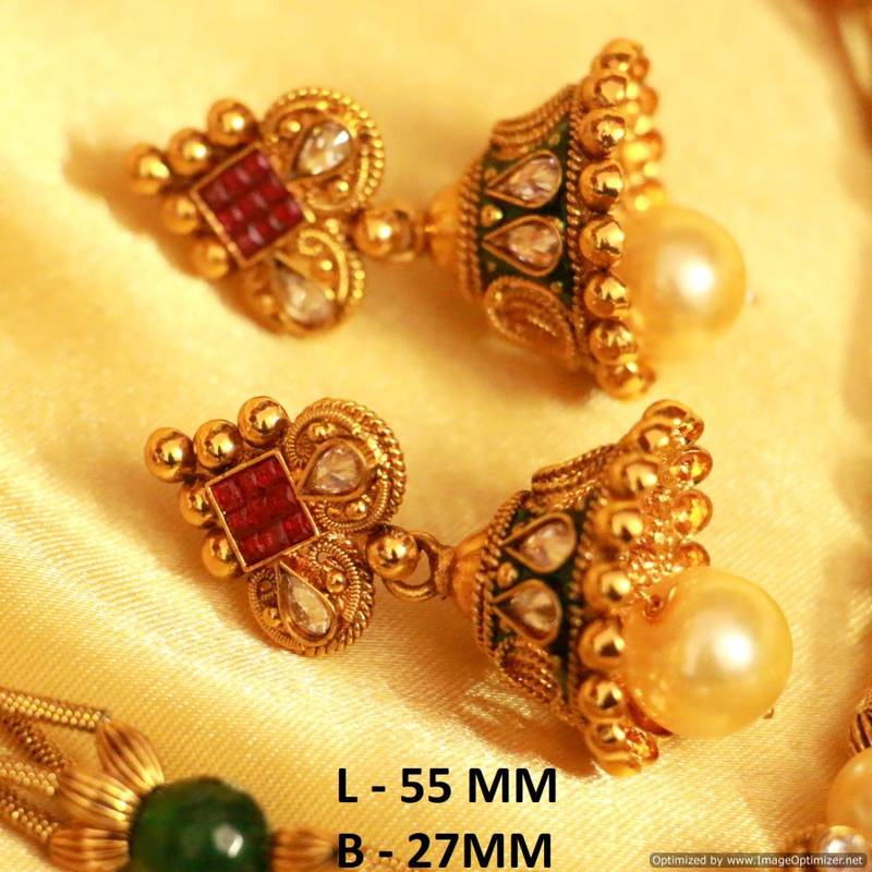 TEMPLE LOOK ANTIQUE GOLD PLATED MULTICOLOUR PENDANT SET