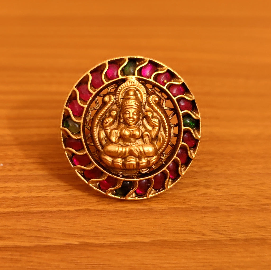 MULTICOLOUR TEMPLE LOOK KEMPU STONE ADJUSTABLE RING