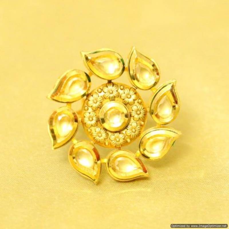 This beautiful ring is handcrafted in brass alloy with imitation kundan work of very fine quality . This ring is coated with 18 kt gold polish which give them a unique look . An absolutely stunning piece to own and are very light in weight.