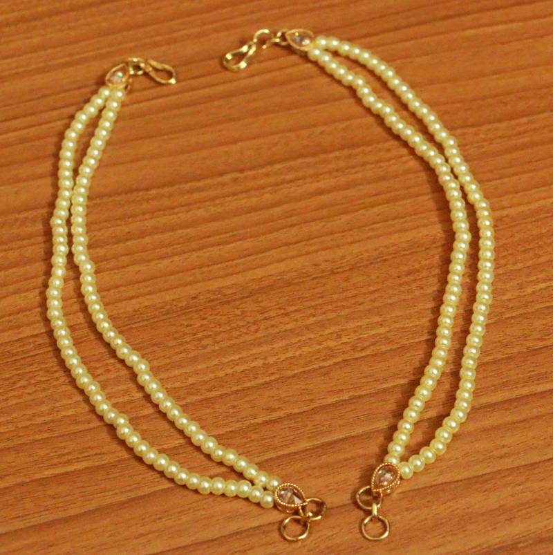 These beautiful earchains are handcrafted in copper alloy with imitation pearls and polki stones of very fine quality. These earchains are very light in weight and are plated in gold rhodium .