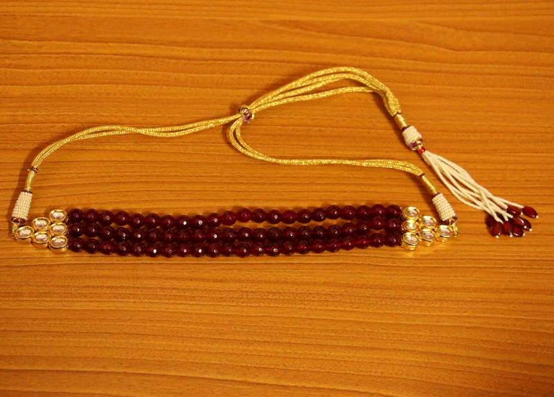 This beautiful necklace is handcrafted in brass alloy with imitation ruby beads & kundan with meenakari work of very fine quality . This necklace is coated with 18 kt gold polish which give them a unique look . An absolutely stunning piece to own and are very light in weight.