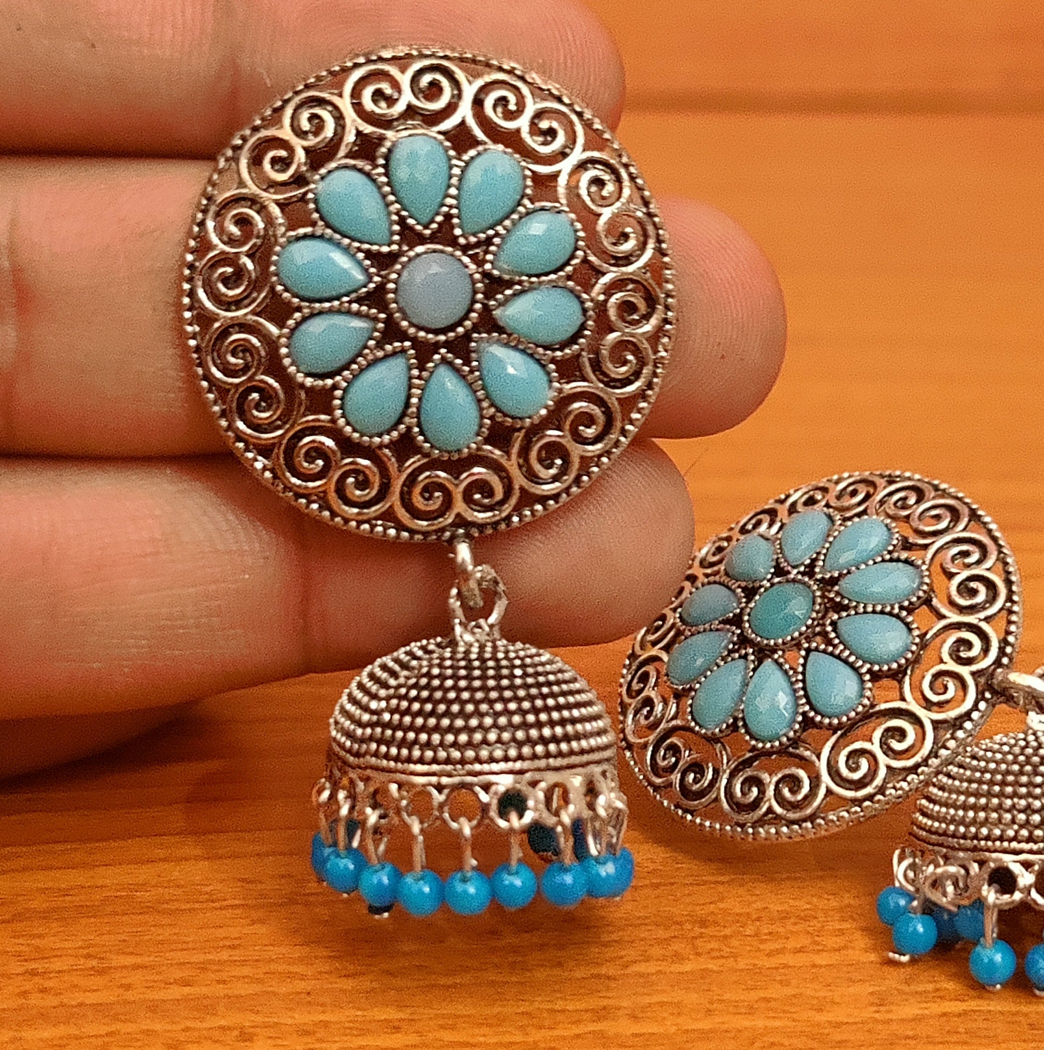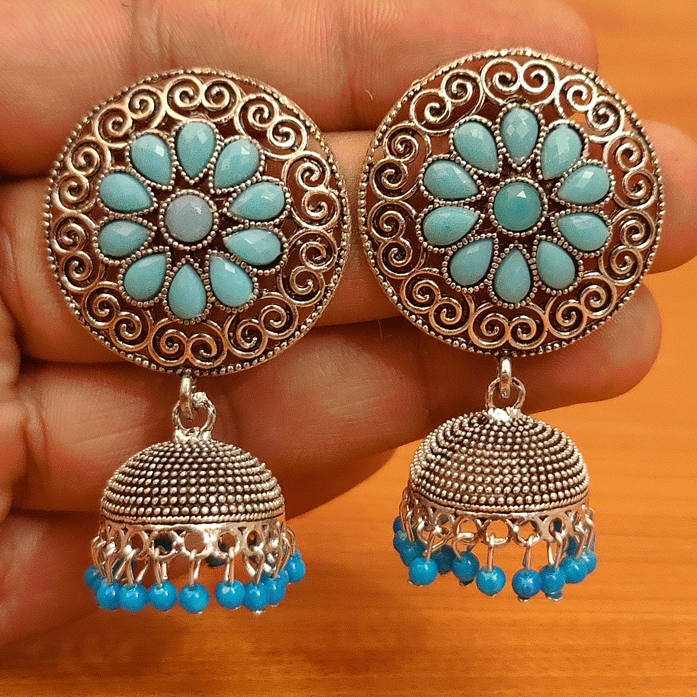 TURQUOISE GERMAN SILVER LOOK JHUMKA'S