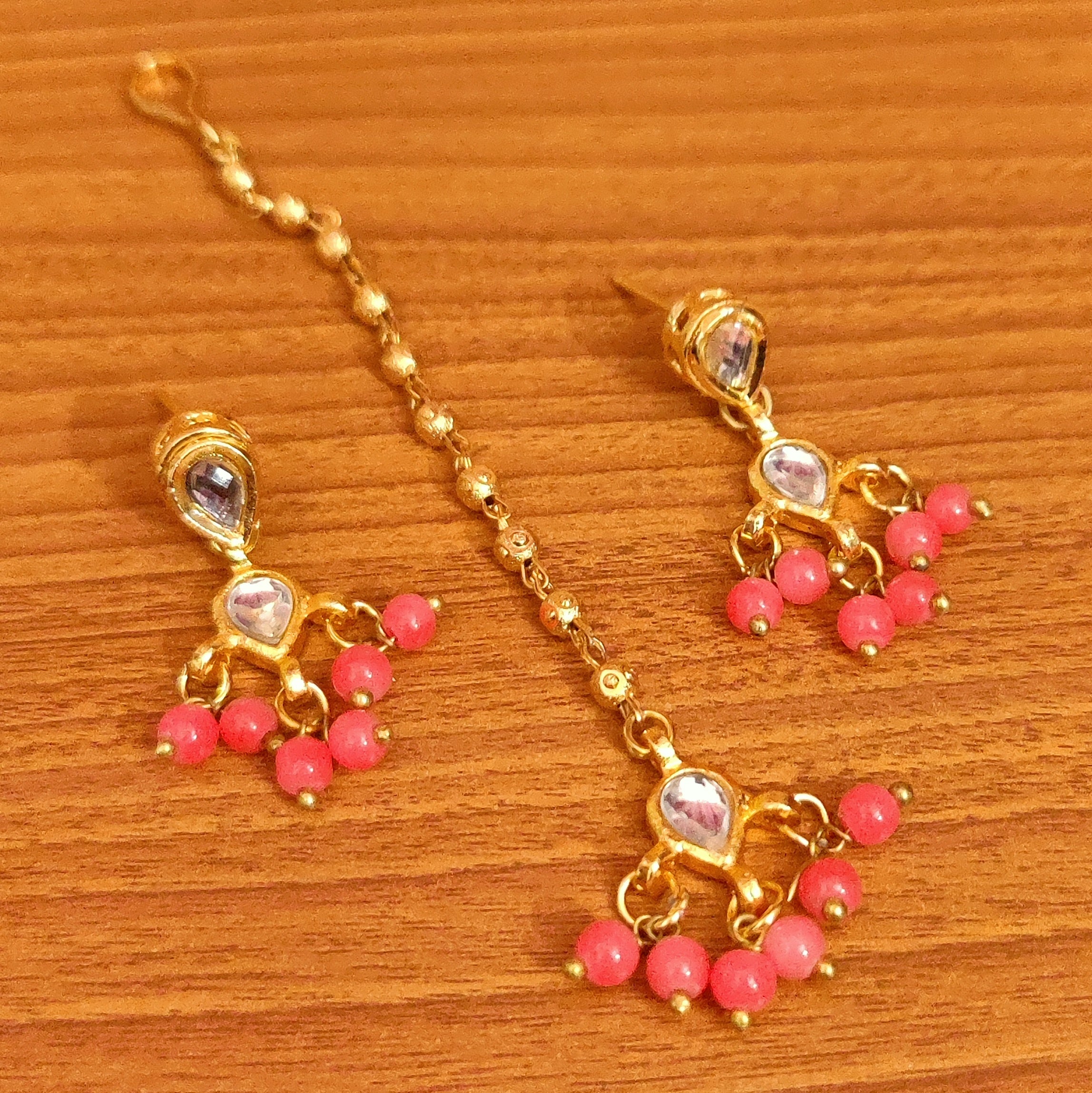 LIGH PINK KUNDAN POLKI EARRINGS & TIKKA
