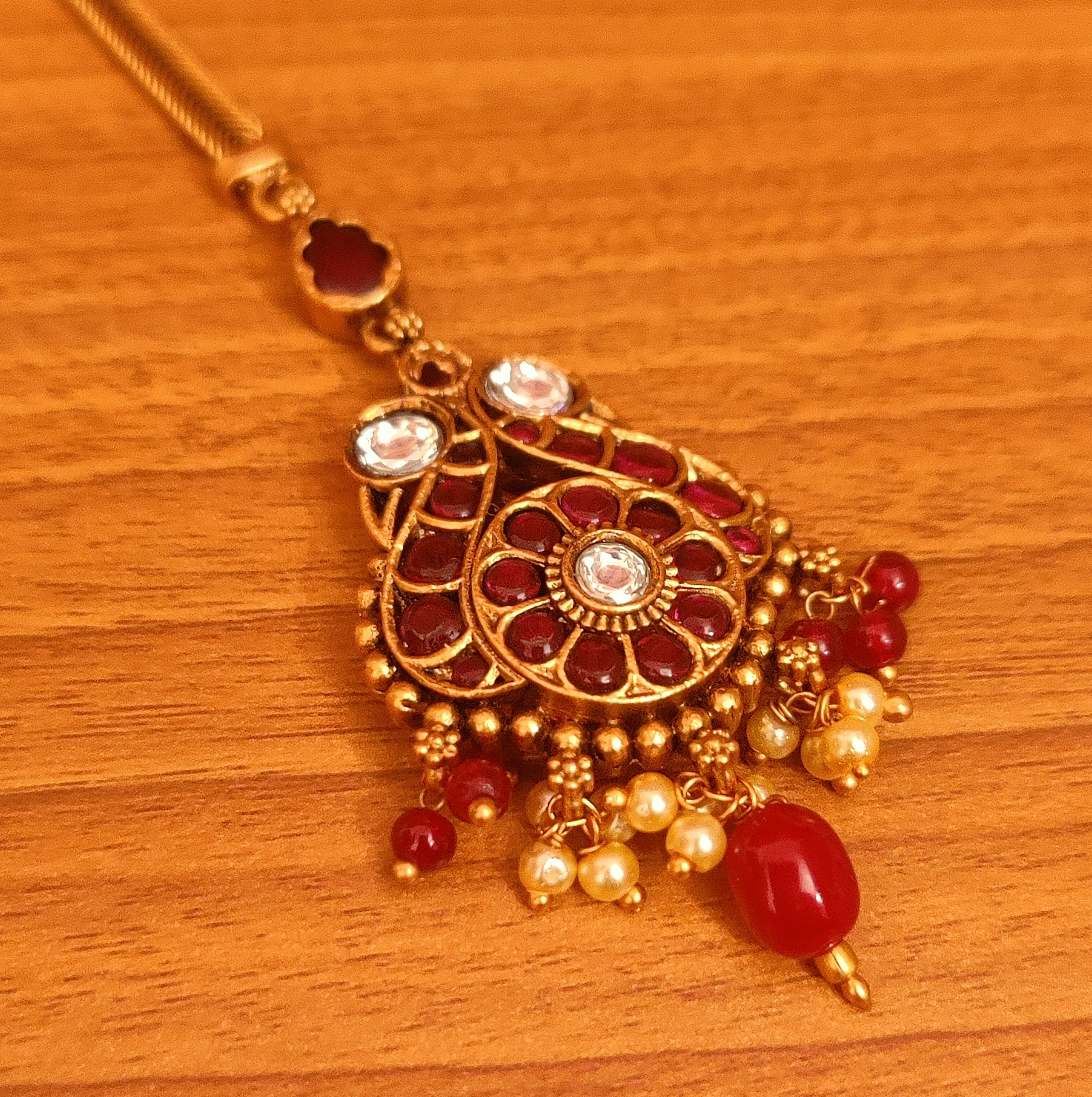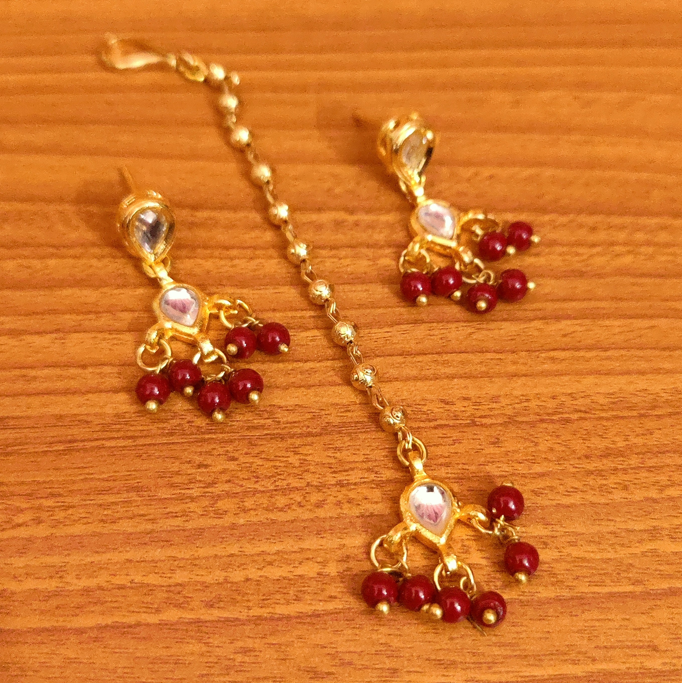 REAL MATT GOLD LOOK RUBY WEDDING MAANG TIKKA