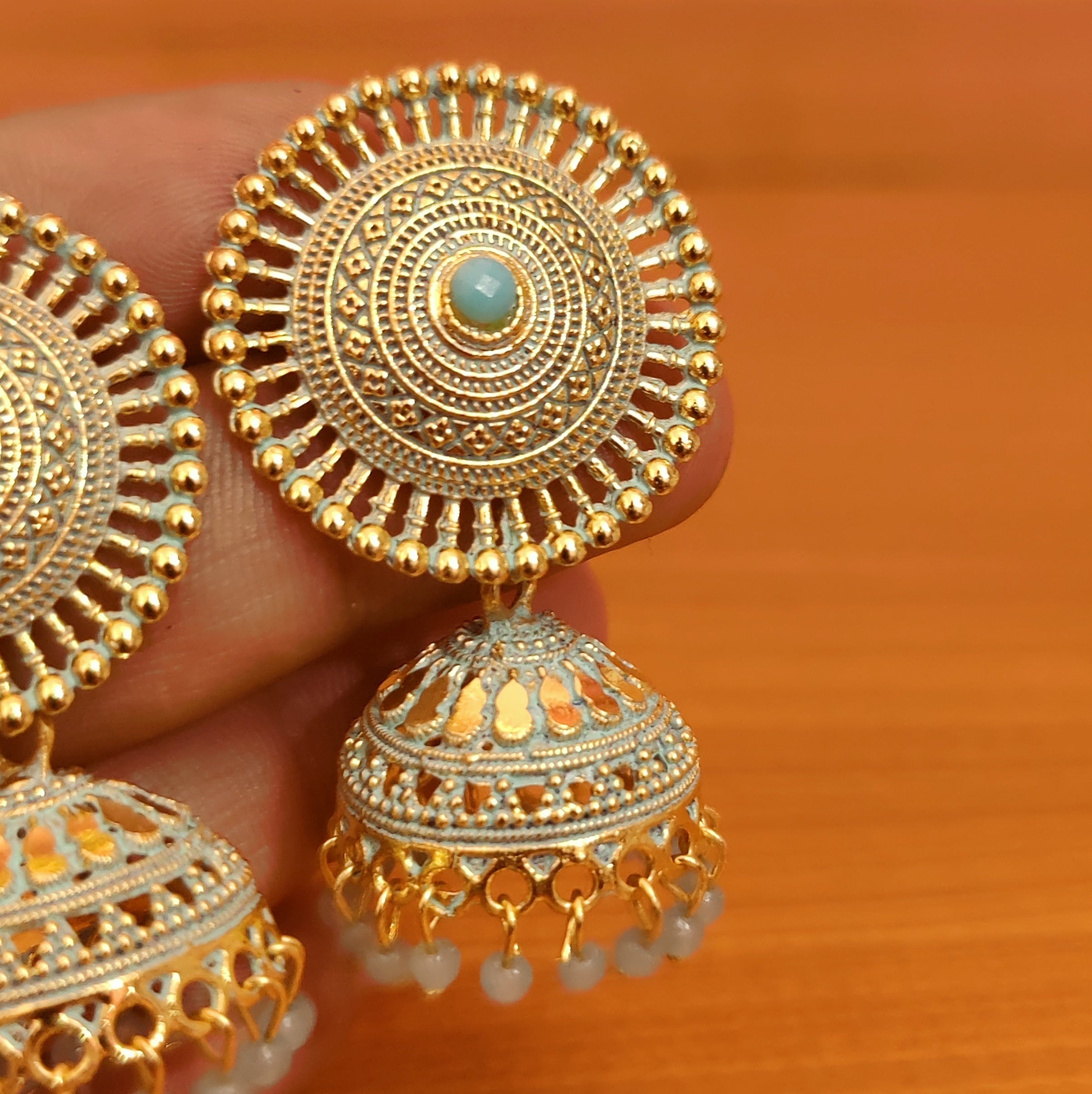 TURQUOISE MEENAKARI GOLD LOOK JHUMKA'S