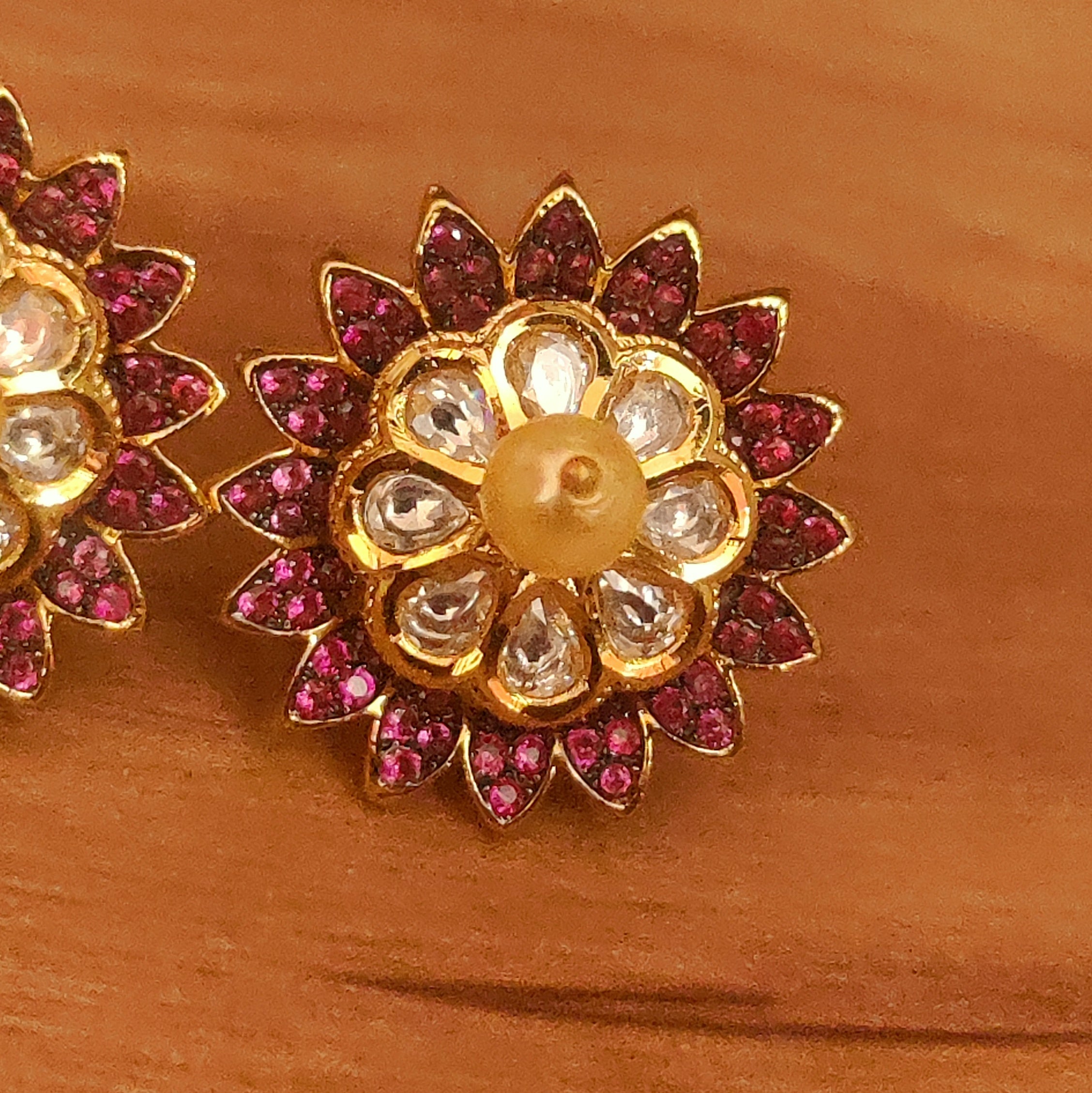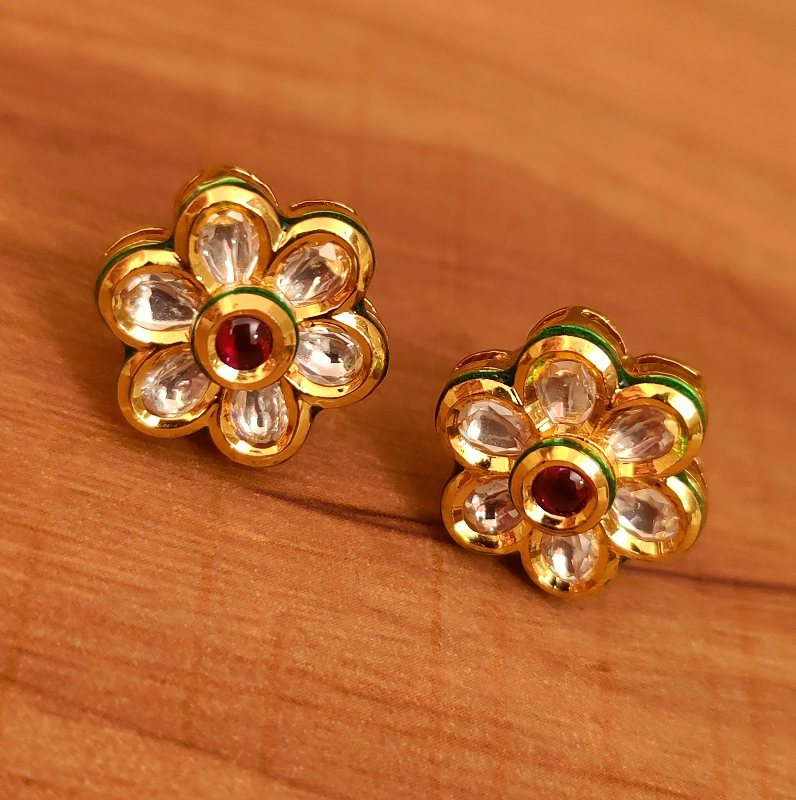 FLOWER KUNDAN MEENAKARI ROYAL STUDS