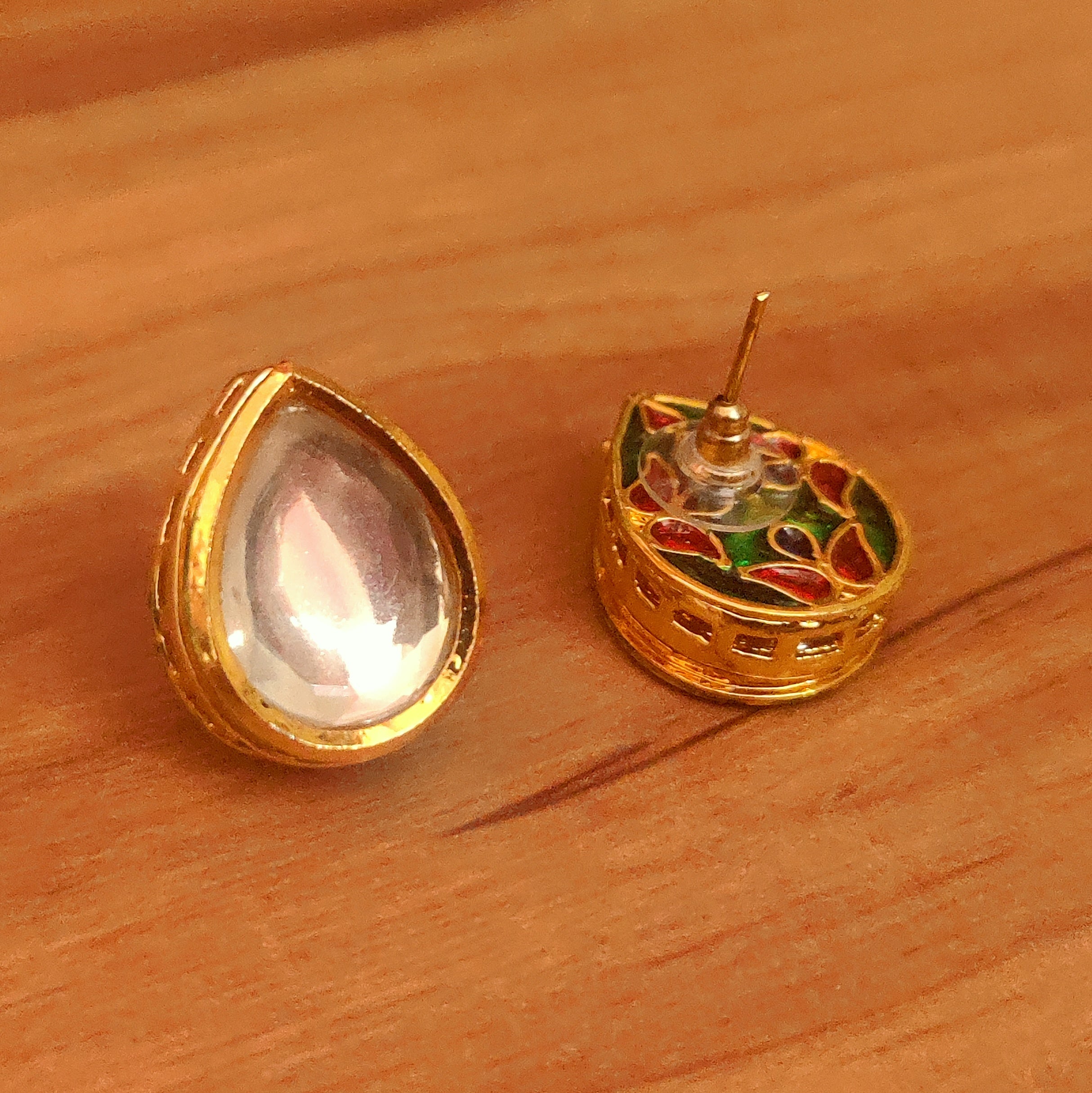 PEAR SHAPED KUNDAN POLKI BIG STUDS