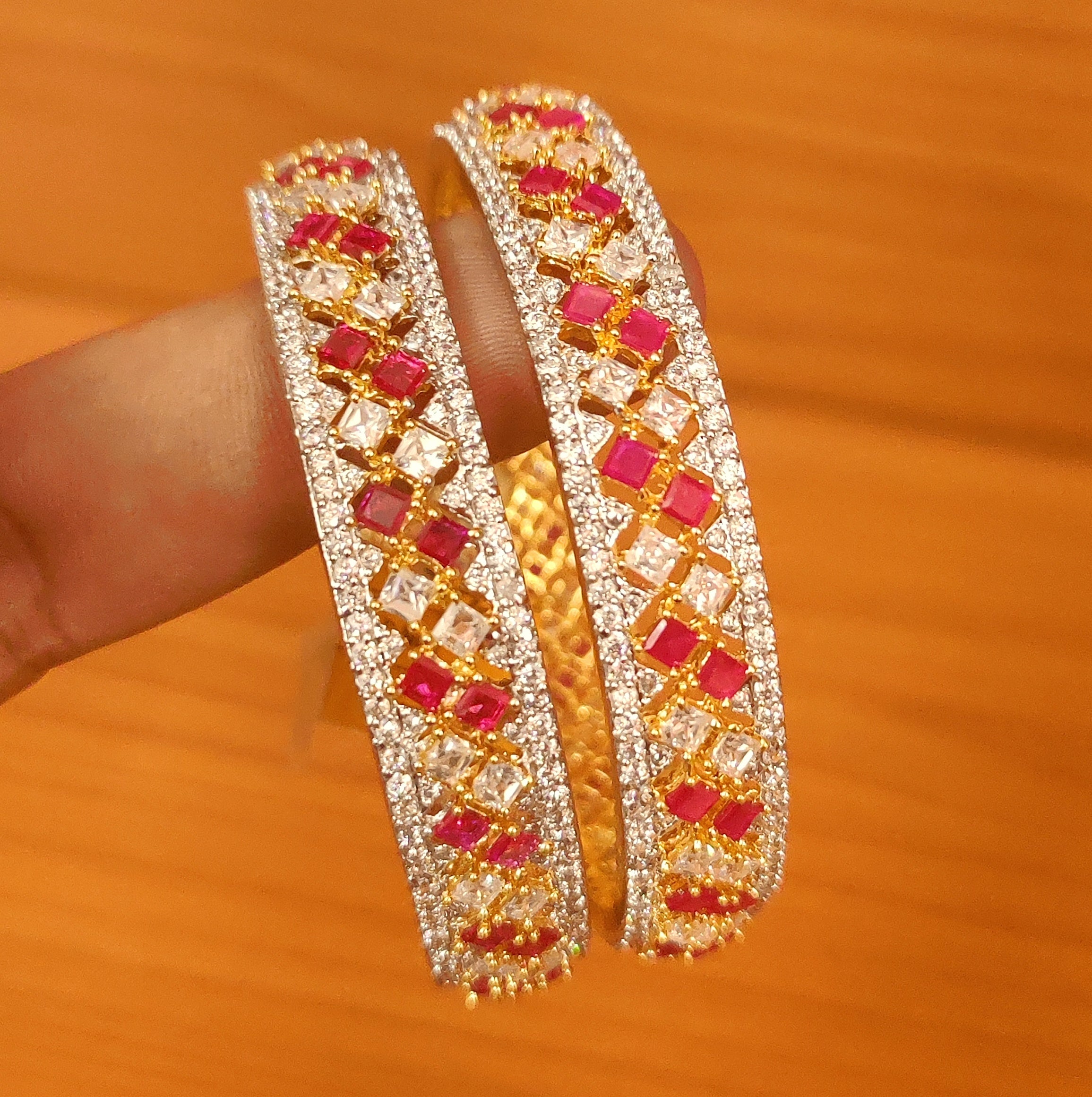 RUBY PRINCESS CUT CZ STUDDED DIAMOND LOOK BANGLES