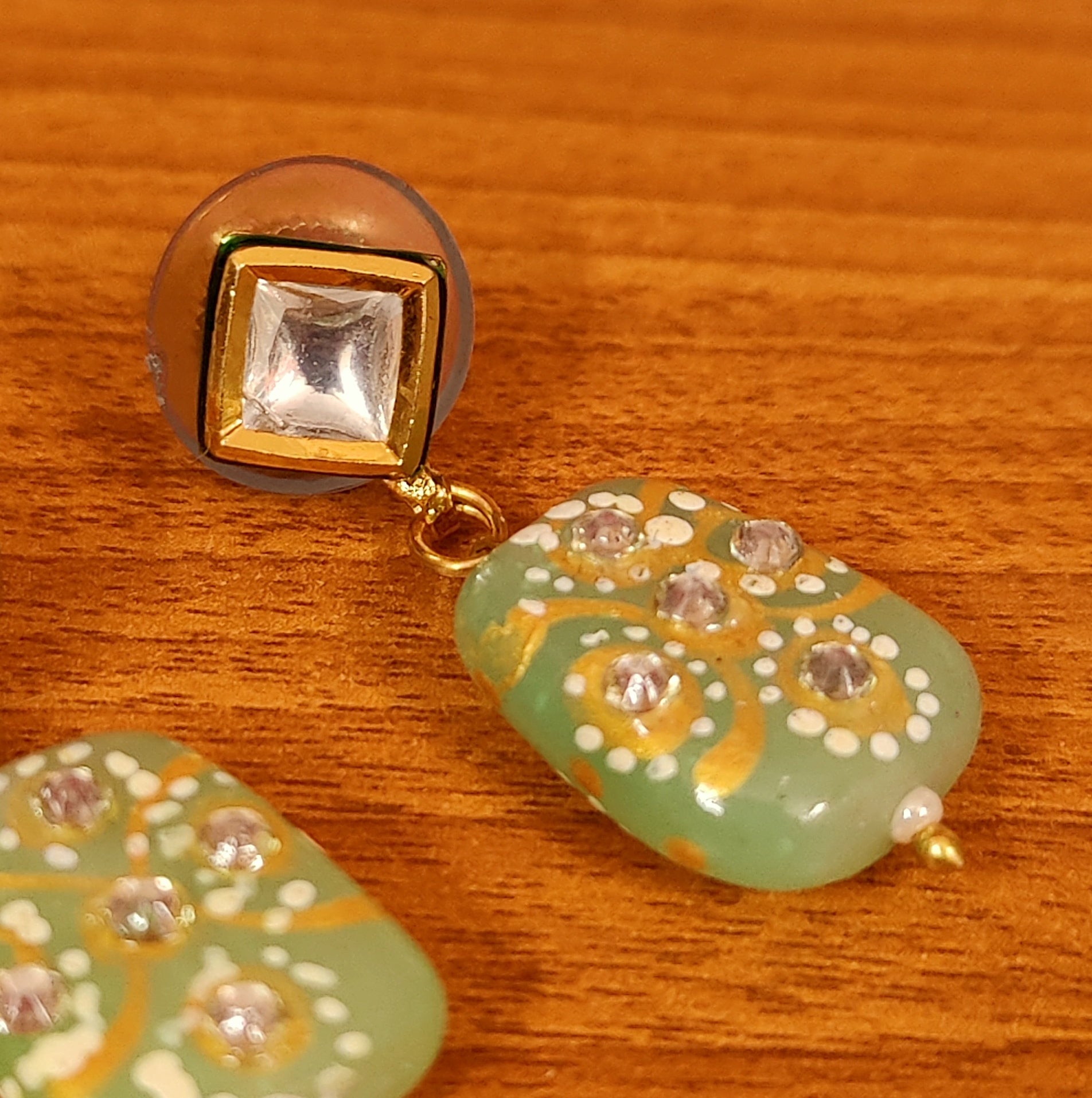 GREEN KUNDAN MEENAKARI POLKI EARRINGS