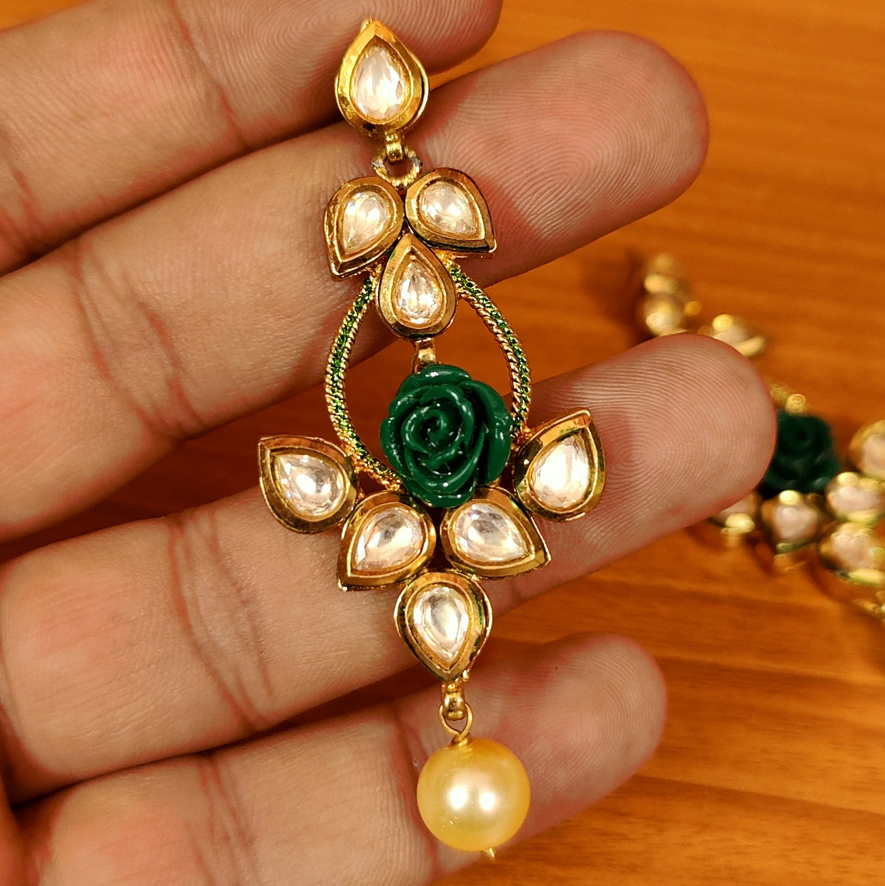 GREEN KUNDAN POLKI EARRINGS & TIKKA