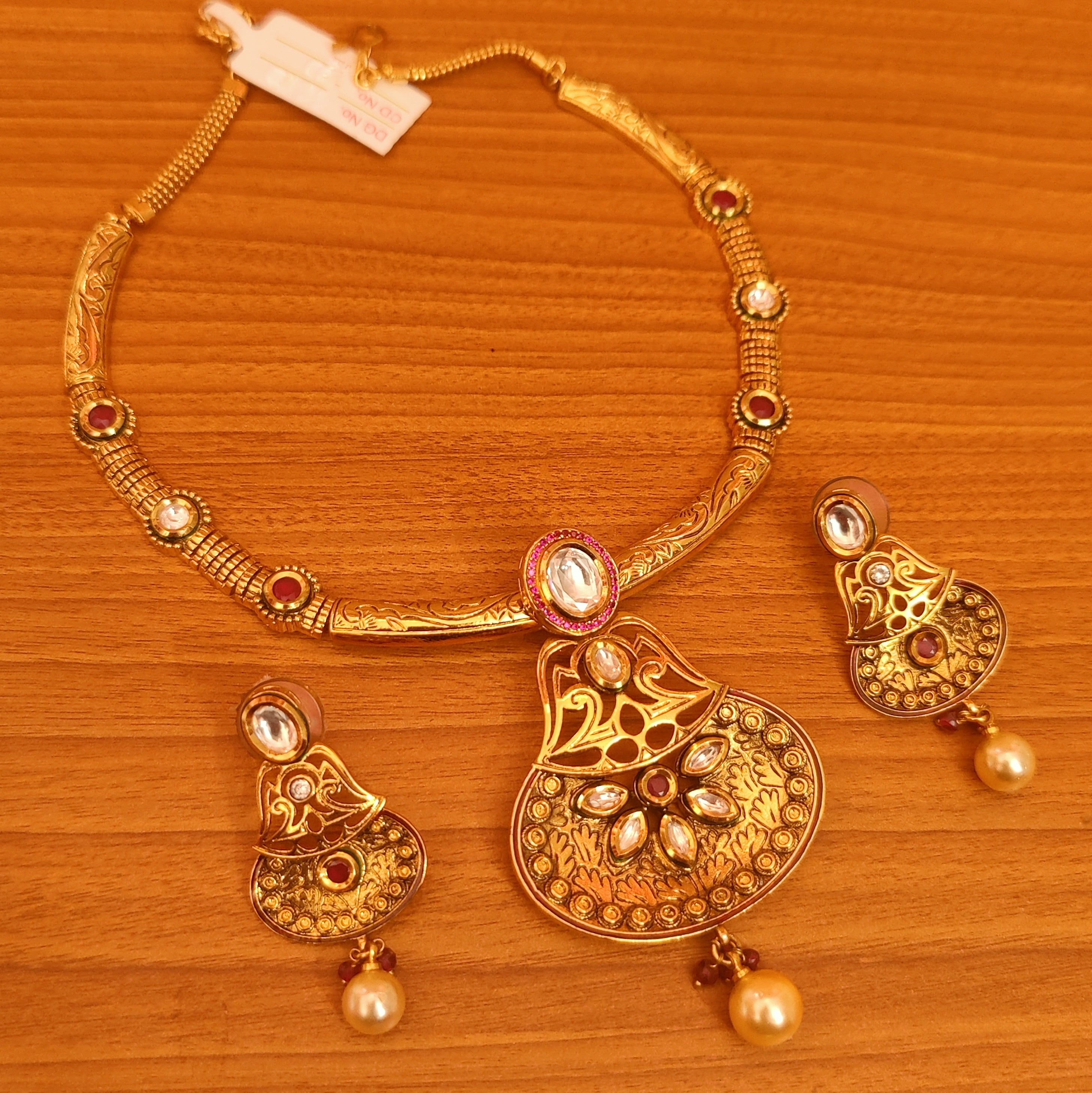 ANTIQUE GOLD LOOK RUBY STUDDED HASLI NECKLACE SET