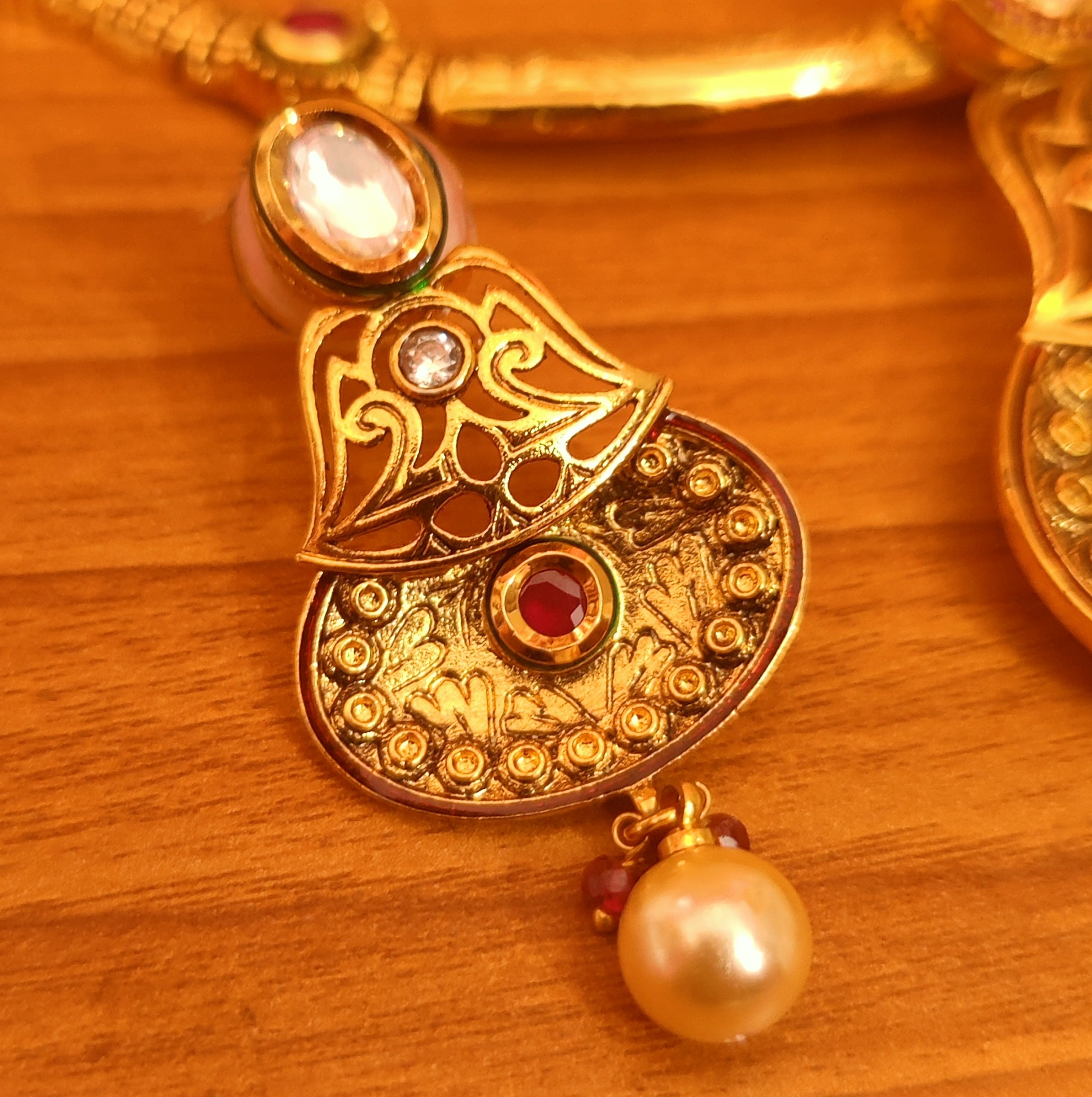 - Material : Alloy, Kundan, Pearls, Antique Gold