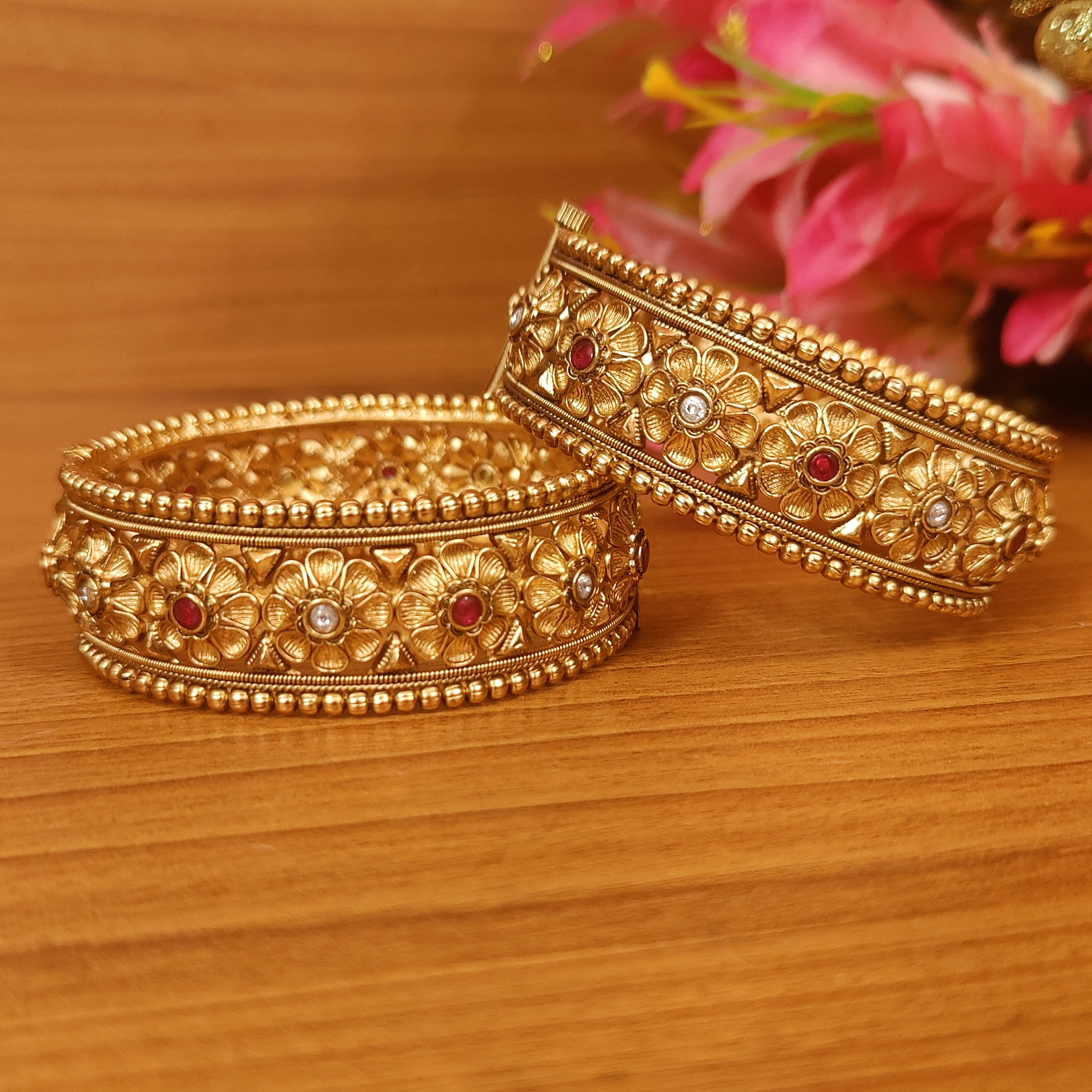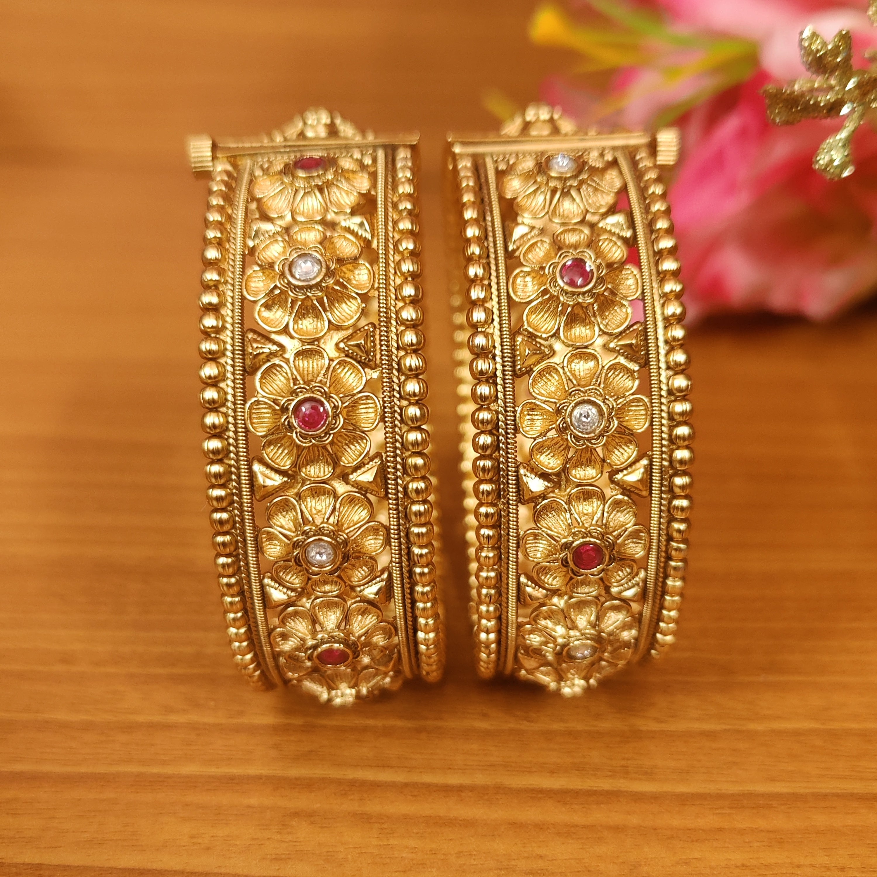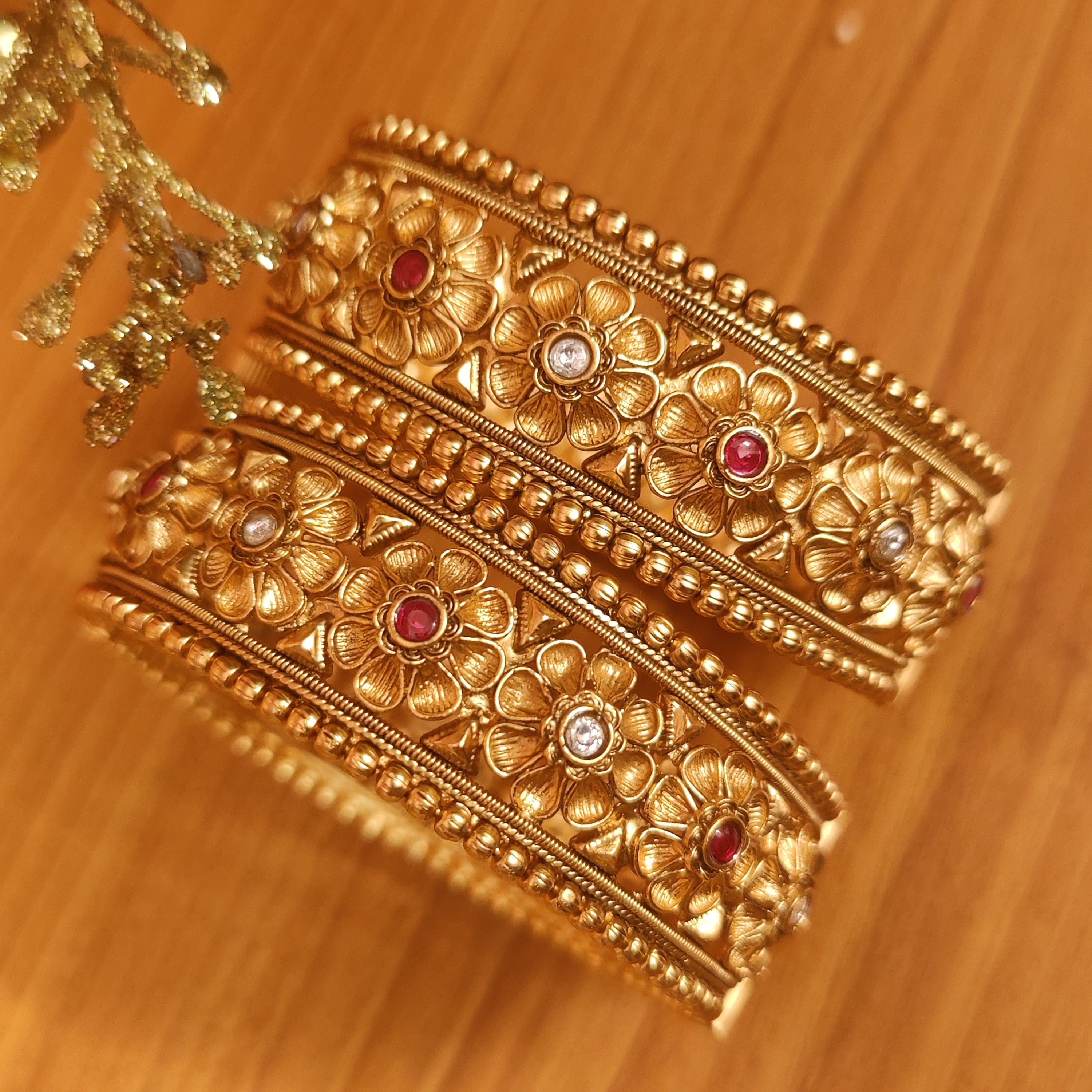 Embrace timeless elegance with our Antique Gold Plated Fine Openable Bangles. These bangles feature a sophisticated antique gold finish, offering a vintage appeal that complements both traditional and contemporary outfits. The intricate craftsmanship and openable design ensure ease of wear while adding a touch of luxury to any occasion. Perfect for weddings, festivals, or everyday elegance, these bangles are a must-have in your jewelry collection.